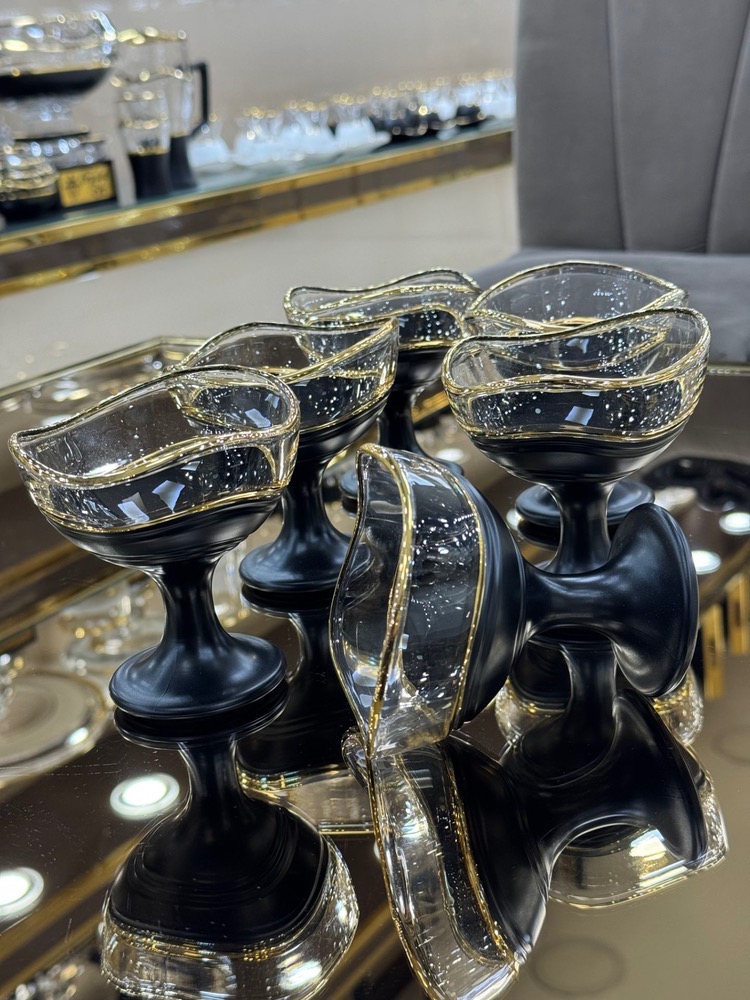 بستی خوری کریستال مشکی و.سفید لب طلایی