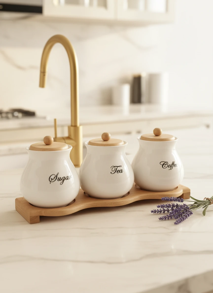 سرویس ادویه سرامیکی پایه چوبی