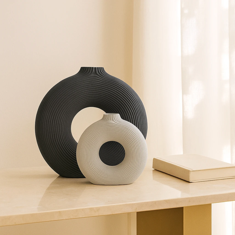 گلدان دکوری رزینی طرح دونات، یک اکسسوری خاص و شیک برای دکوراسیون داخلی است که با طراحی برجسته و ظریف خود جلوهای متفاوت به فضا میبخشد. بدنه این گلدان از رزین باکیفیت ساخته شده و با نقشهای برجسته تزئین شده که حس ظرافت و هنر را به خوبی منتقل میکند. رنگ خنثی و مینیمال آن باعث میشود بهراحتی با انواع سبکهای دکوراسیون مانند مدرن، کلاسیک و مینیمال هماهنگ شود.