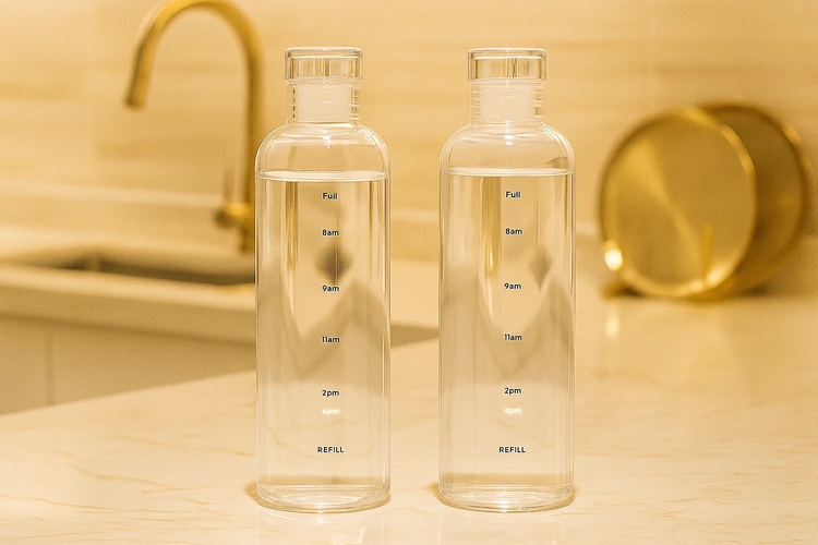 + موارد بیشتراین ست دوتایی بطری شیشهای با طراحی مینیمال و شفاف، کاملاً هماهنگ با سبک Organic Lux روشن شماست؛ ترکیب درخشش شیشه تمیز با پسزمینهی مرمر کرم روشن و شیر طلایی برسخورده جلوهای لوکس و کاربردی ایجاد میکند