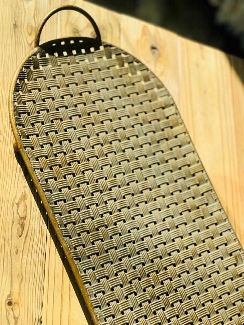 + موارد بیشترسینی از فلز سخت سبک ساخته شده و سطح آن دارای نقش برجستهی حصیری است که حس بافت طبیعی چوب یا الیاف را انتقال میدهد. فرم کلی آن بیضی کشیده با دستههای فلزی یکپارچه در دو سمت است. لبهها کمی برجسته طراحی شدهاند تا هم ایمنی داشته باشد و هم در چیدمان، جلوهای ساختاری و دقیق ایجاد کند.