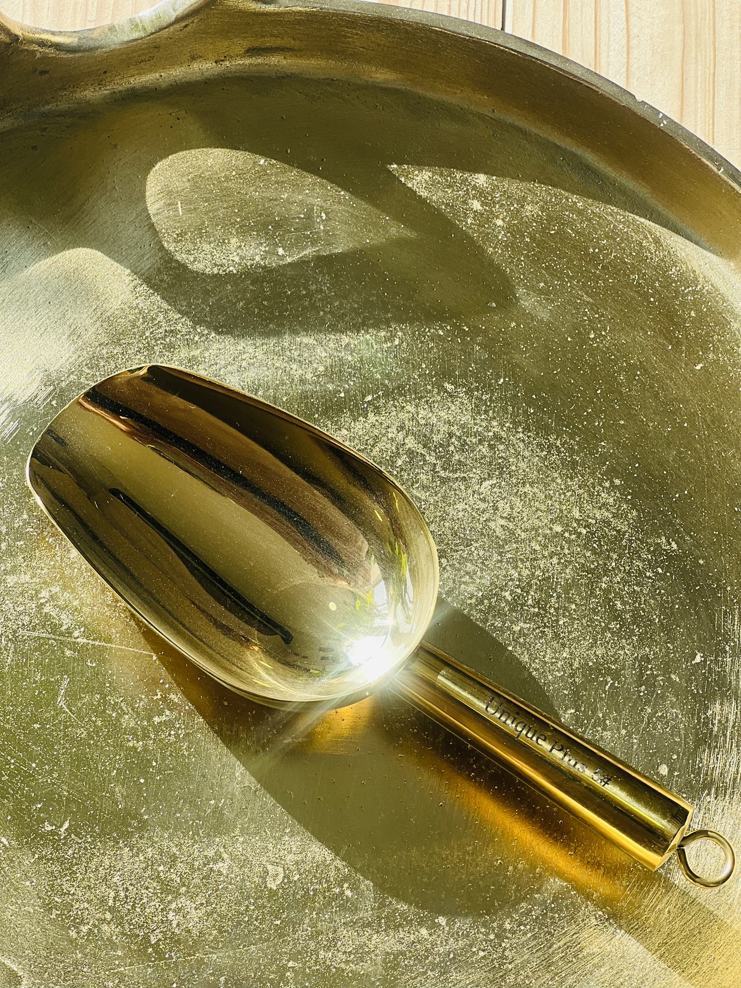 - کاربرد: ابزار سرو برای دانههای خوراکی، قهوه، شکر یا حتی بهصورت تزئینی کنار سینیها یا در ترکیب ستهای دکوری فلزی