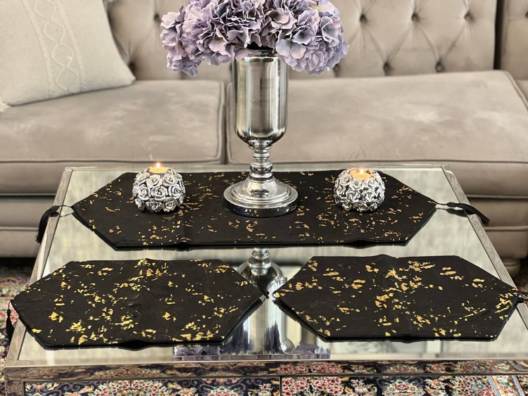 ۱:: رو میزی مخمل مشکی پتینه طلای