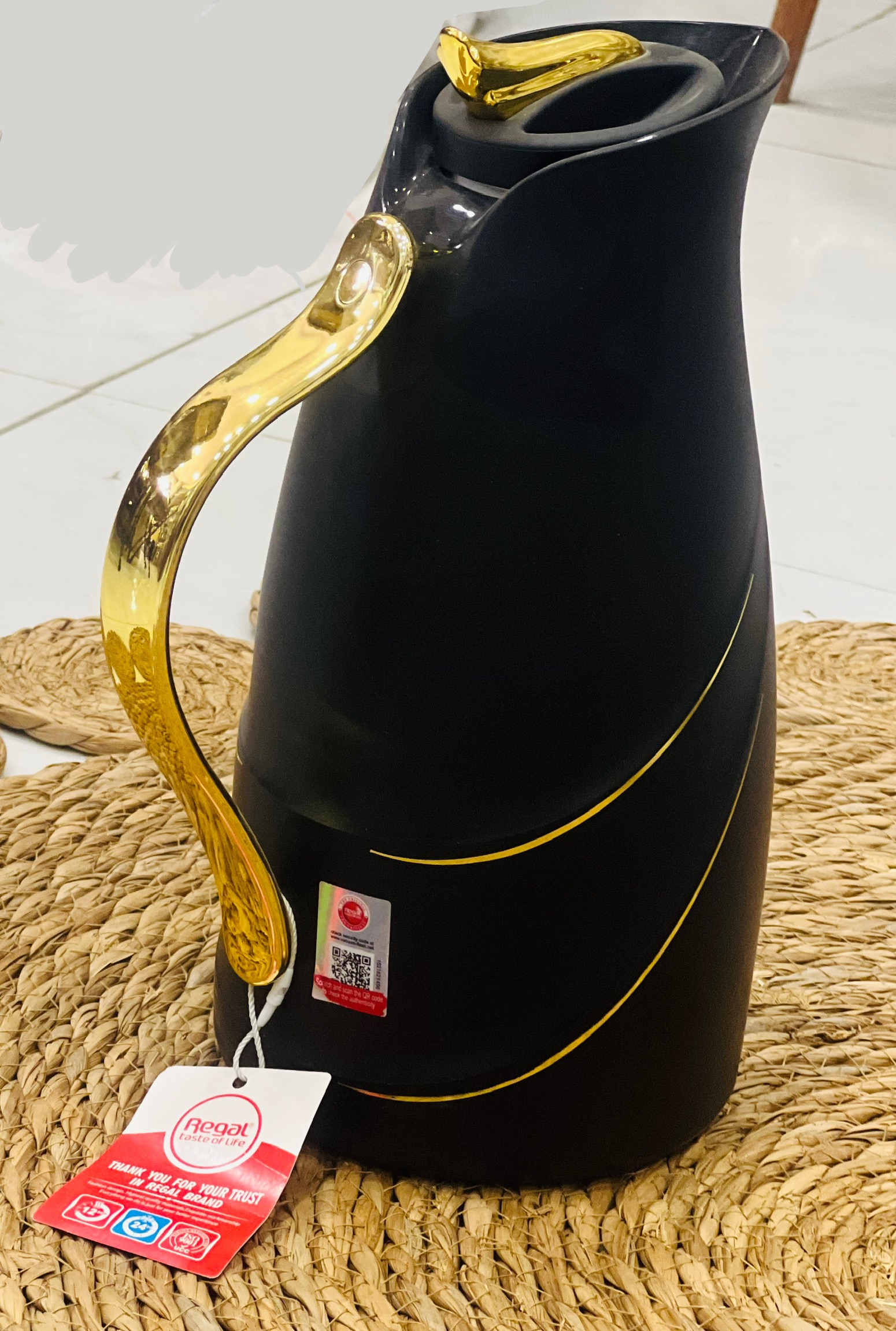 ** مشکی مات با خطوط منحنی طلایی براق روی بدنه و دسته طلایی متالیک