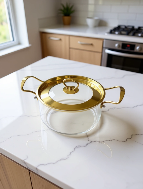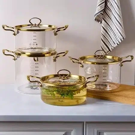 قابلمه پیرکس درب استیل طلایی