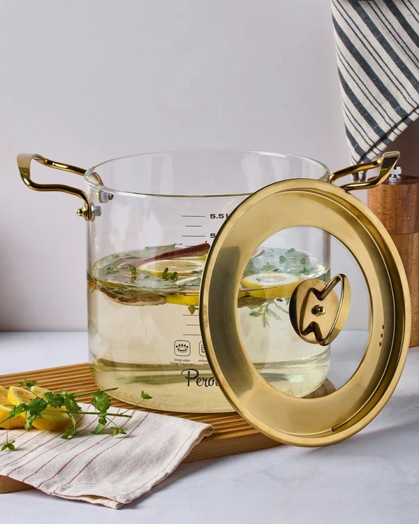 قابلمه پیرکس درب استیل طلایی