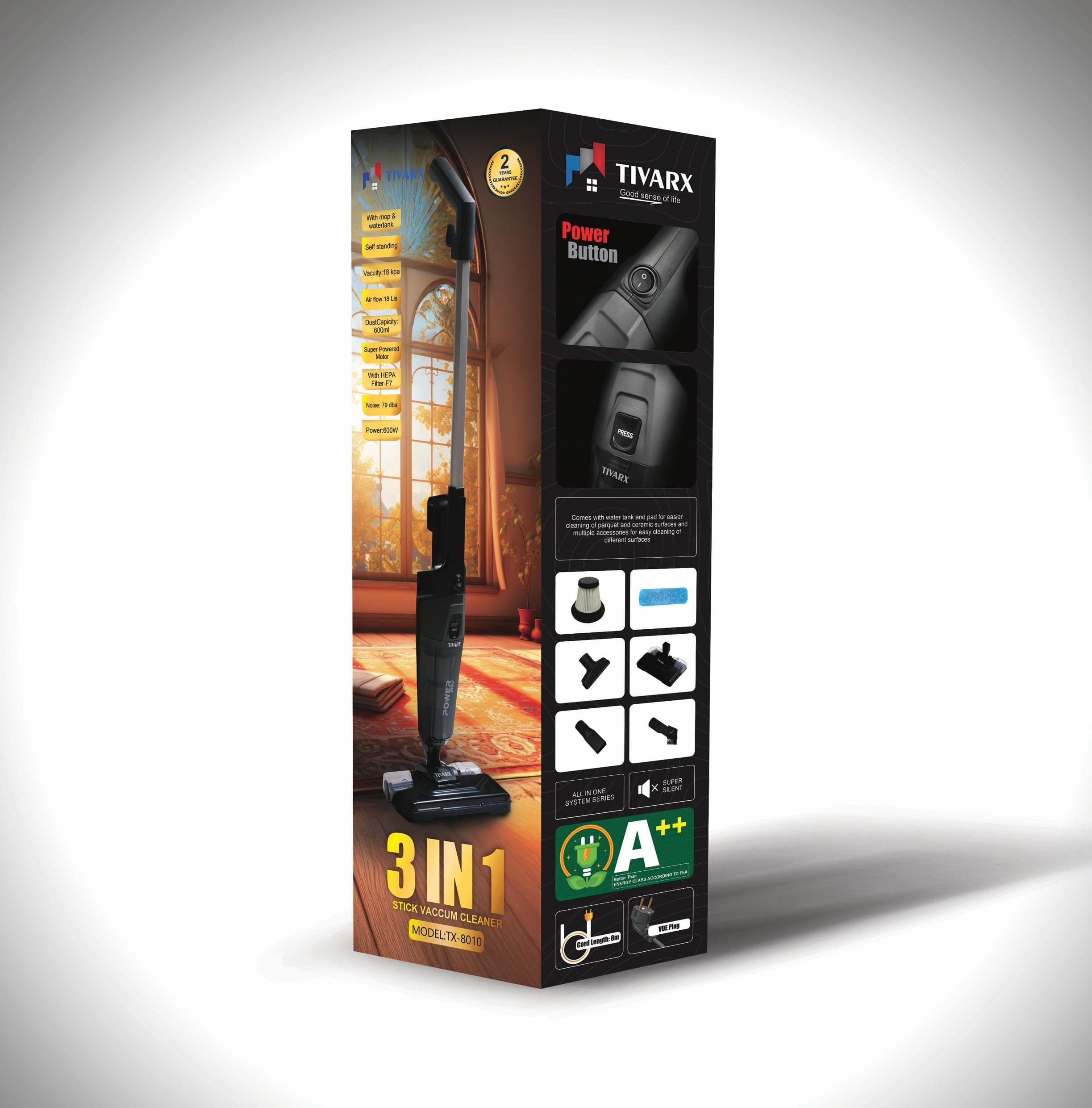 اولین نکتهای که در مورد تیوارکس 8010 جلب توجه میکند، وزن خالص 1600 گرمی (1.6 کیلوگرم) آن است. این وزن کم، جابجایی و استفاده از دستگاه را، حتی برای تمیز کردن سطوح مرتفع یا داخل اتومبیل، بسیار آسان میکند. طراحی پرتابل (قابل حمل) این امکان را فراهم میآورد که به راحتی گوشهها، زیر مبلها و سایر نقاطی که دسترسی به آنها با جاروبرقیهای بزرگ دشوار است، نظافت شوند.