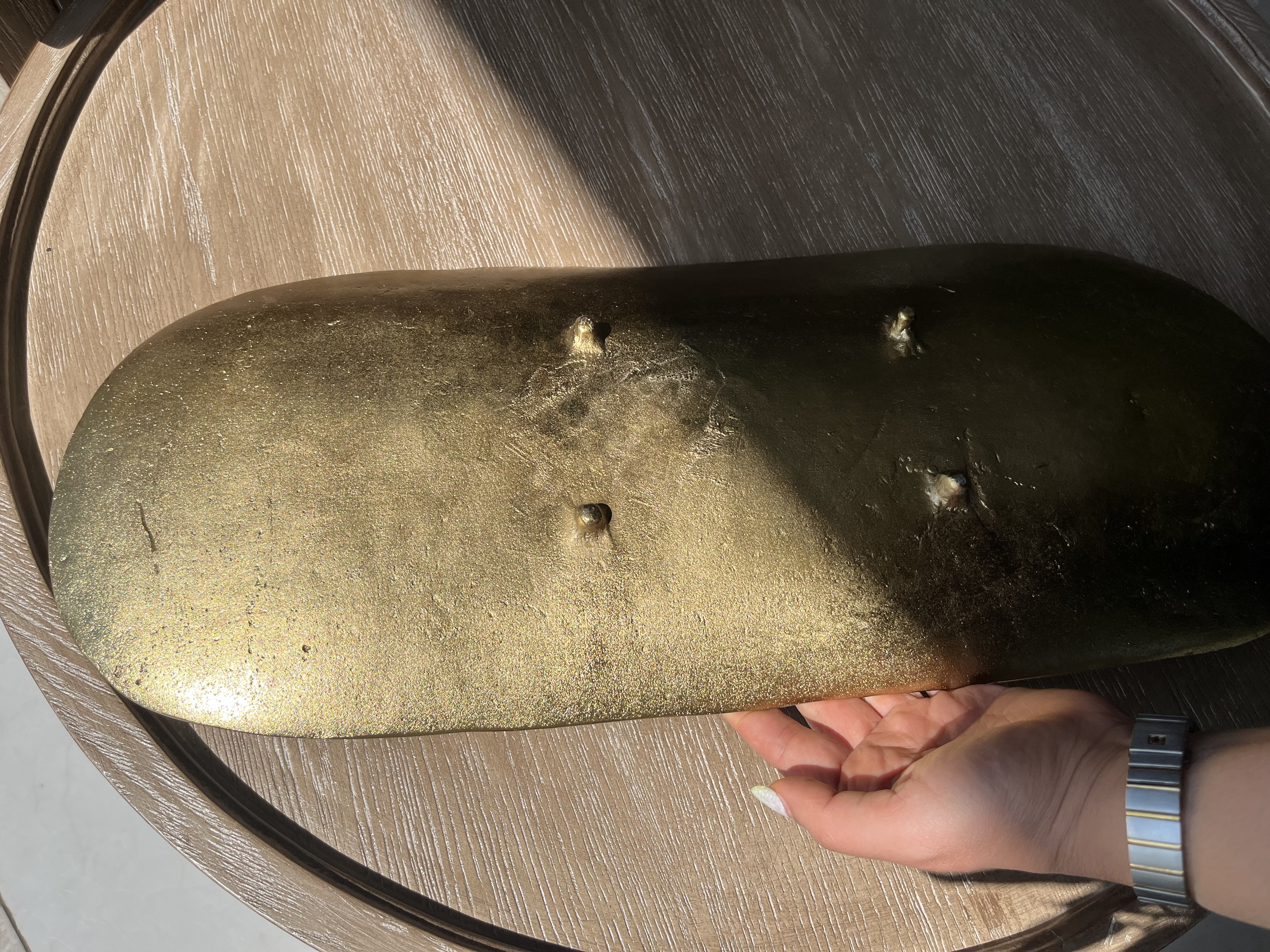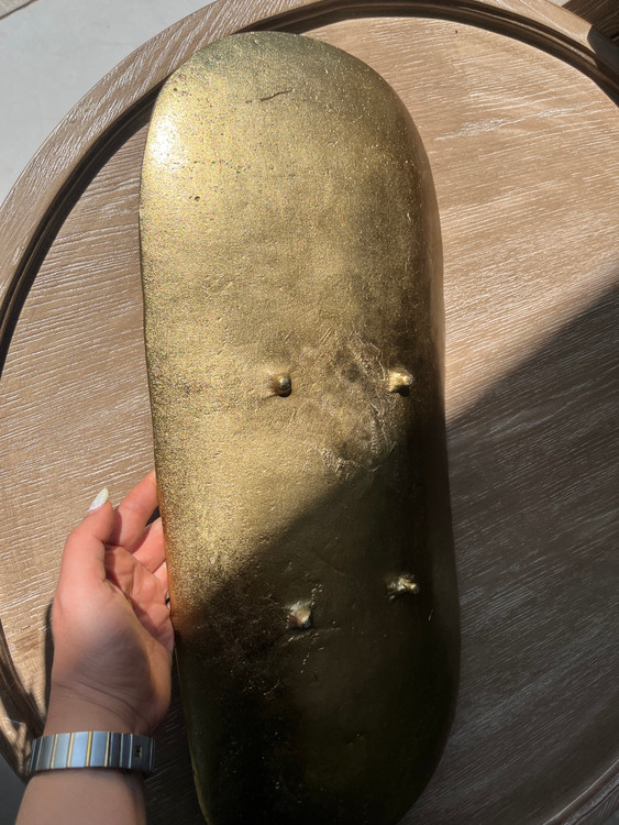 جنس: فلز سبک یا آلیاژ رزینی با روکش متالیک طلایی شامپاین مات.