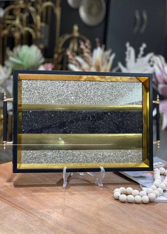 سینی آکرولیک لوکس یک انتخاب بینظیر برای افرادی است که به دکوراسیون شیک و جزئیات خاص در خانه اهمیت میدهند. این سینی از جنس آکرولیک باکیفیت ساخته شده و با ترکیب جذابی از سطح اکلیلی نقرهای، نوار طلایی، و بخش میانی تیره جلوهای مدرن و بسیار چشمگیر ایجاد کرده است.