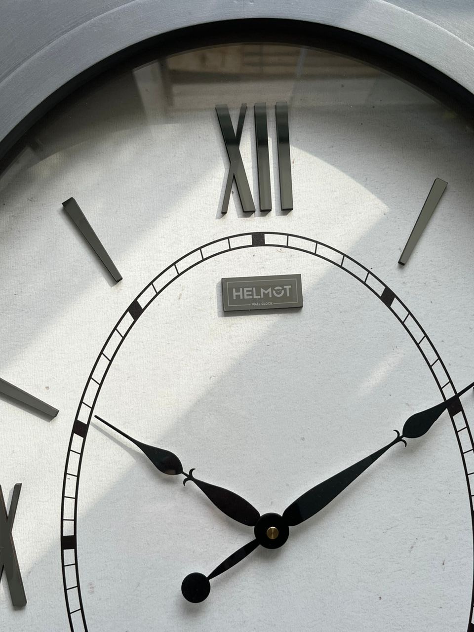 اعداد: اعداد رومی برجسته (XII, IX, VI, III) به رنگ طوسی فلزی روشن.