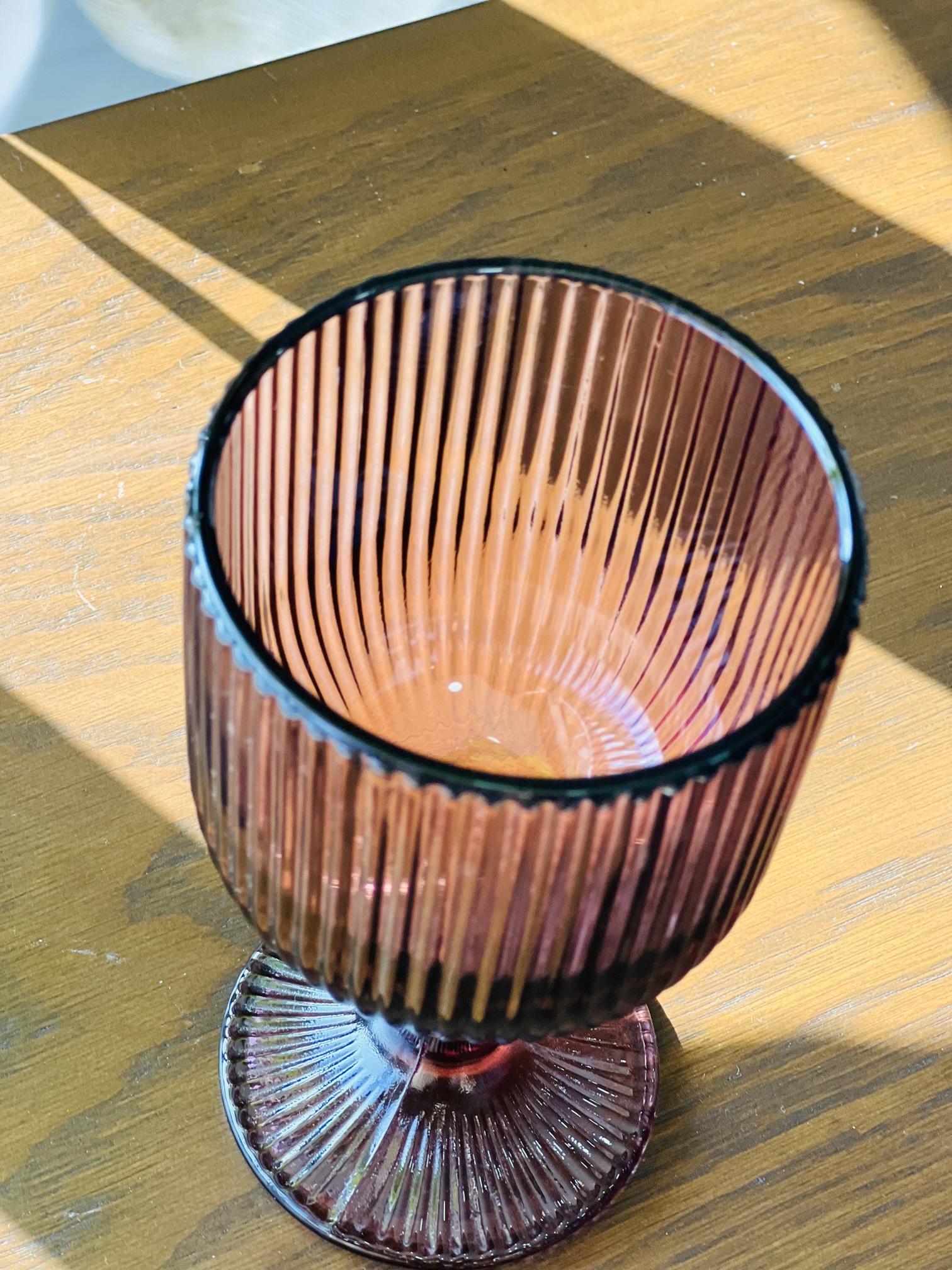 - رنگ:(بنفش آلوبالویی → رزبرنز روشن)• پایین بسیار تیره و نزدیک به زغالی• بالا شفافتر و گرمتر• در نور مستقیم، انعکاسهای شامپاینی‑قرمز میدهد