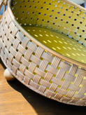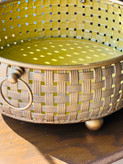 - رنگ: (طلایی ماسهای مات)• بافت بیرونی: طلایی عتیقه با کمی پَتینه کرمی• داخل ظرف: طلایی روشنتر و براقتر• لحن کلی رنگ: گرم، طبیعی،