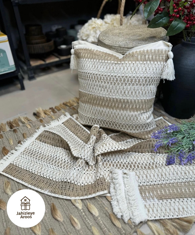 جنس: • بافت دستباف از کتان–پنبه طبیعی