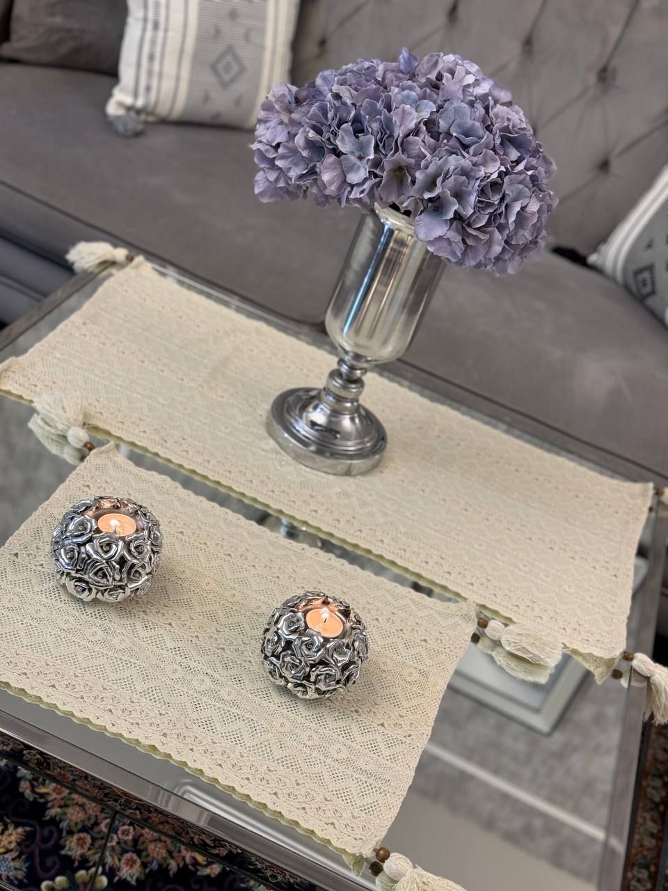 - سه قطعه کاملاً هماهنگ:• رانر اصلی (طول بلند)• دو زیرمیزی برای اطراف یا زیر وسیلههای دکوری