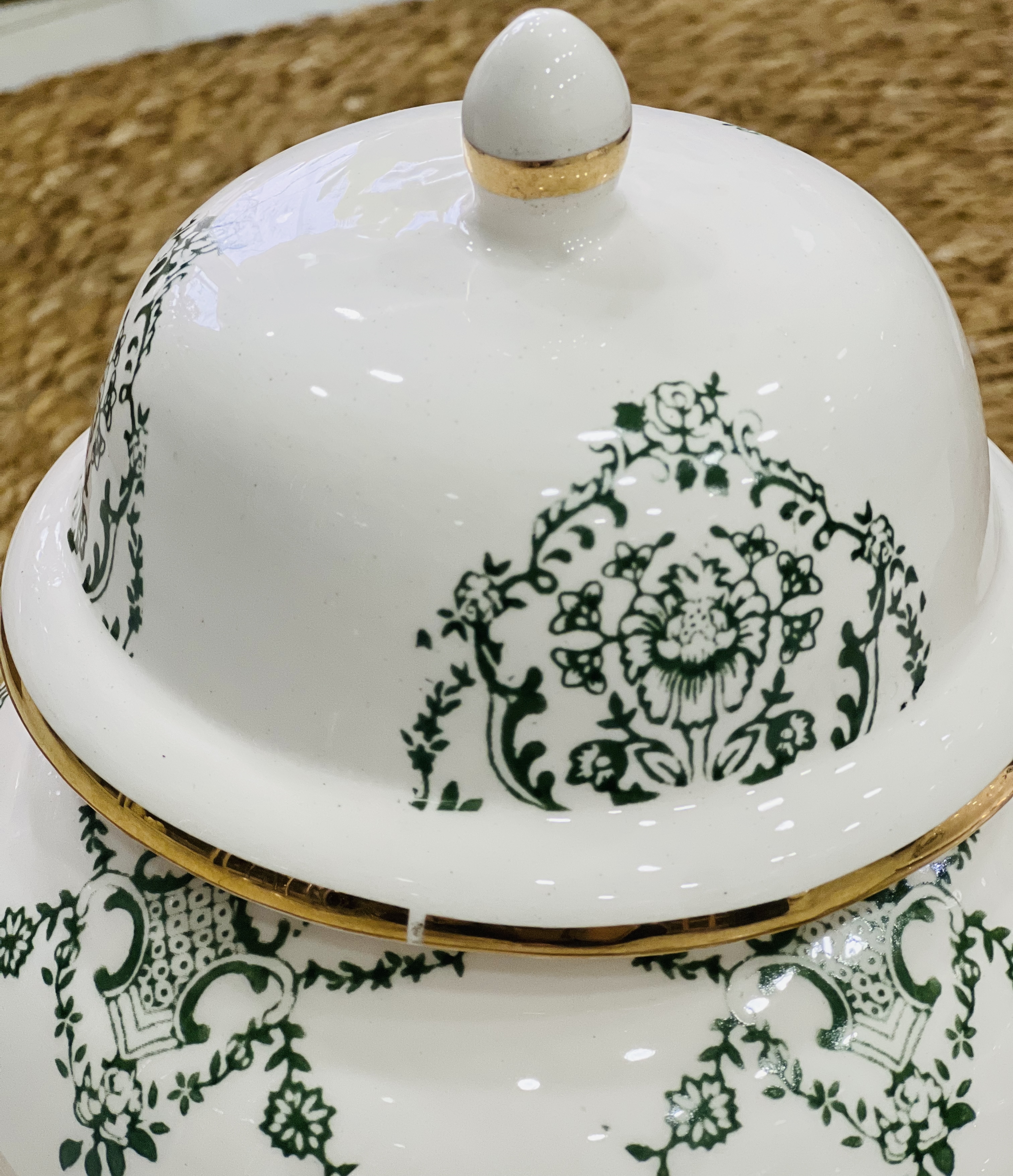 ۴: : رنگ: • بدنه: سفید استخوانی گرم • طرح: سبز زمردی تیره