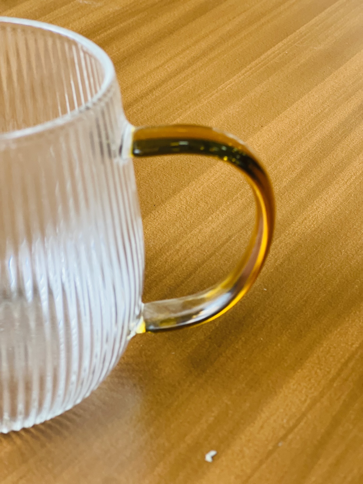 این ماگ از شیشه شفاف شیاردار ساخته شده و با دسته شیشهای رنگ کهربایی (طلایی گرم) جلوهای شیک و مینیمال دارد. طراحی گرد و دیوارههای شیاردار باعث خوشدستی بیشتر و جلوه بصری خاص میشود. انتخابی ایدهآل برای چای، قهوه، دمنوش و لاته، مخصوصاً در فضاهای مدرن