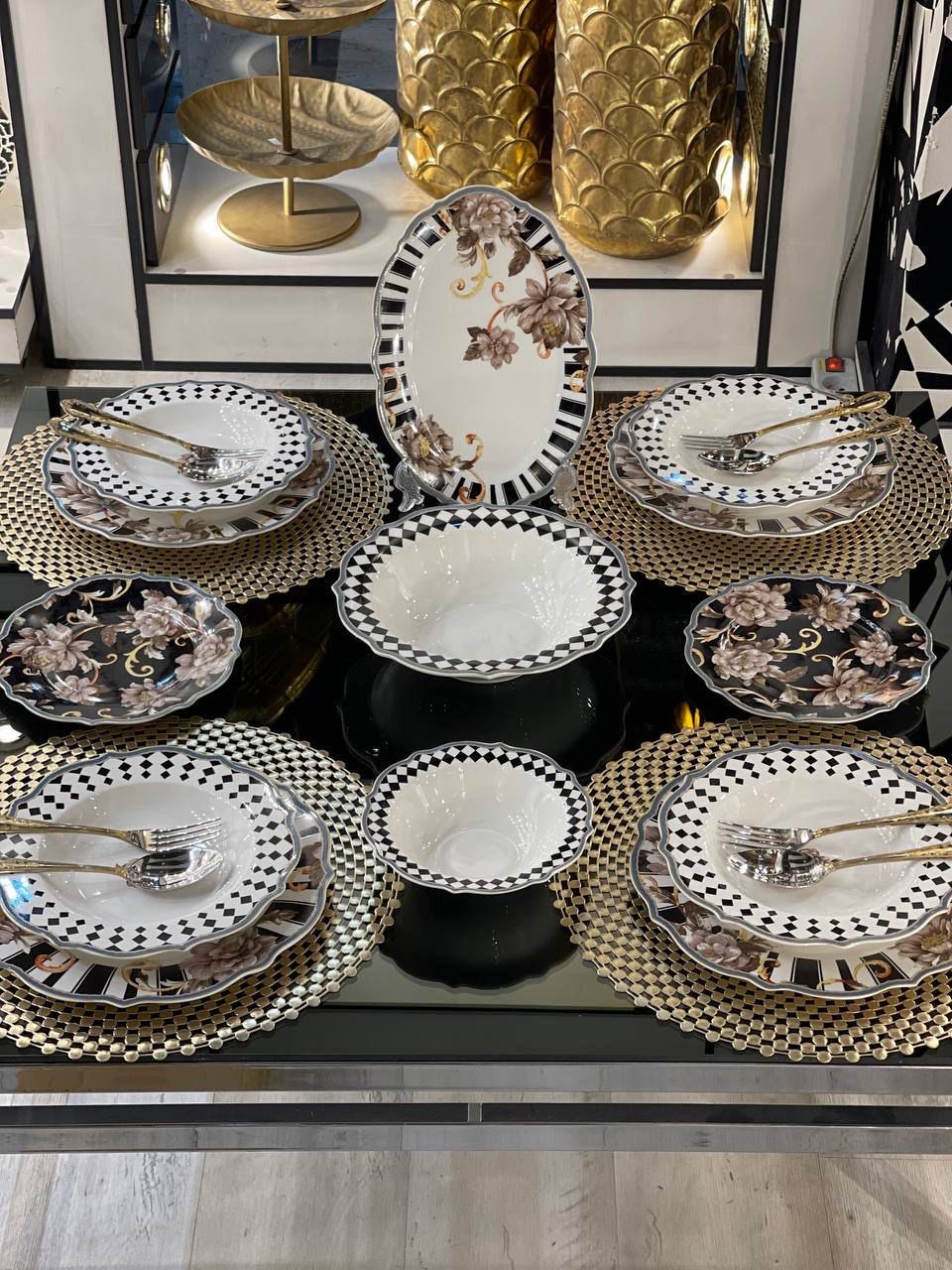 ست 28 پارچه بن چاینا وارداتی برند (ونتیVENTI) جنس سرویس از (بن چاینا)چینی استخوانی هست و هر ست شامل: 6عدد بشقاب 6عدد خورشت خوری 6عدد پیش دستی 6عددکاسه 1عدد دیس 1عدد کاسه و 1 جفت نمکدون هست . ✨این محصول قابل استفاده در ماکروفر و ماشین ظرف شویی هم هست.