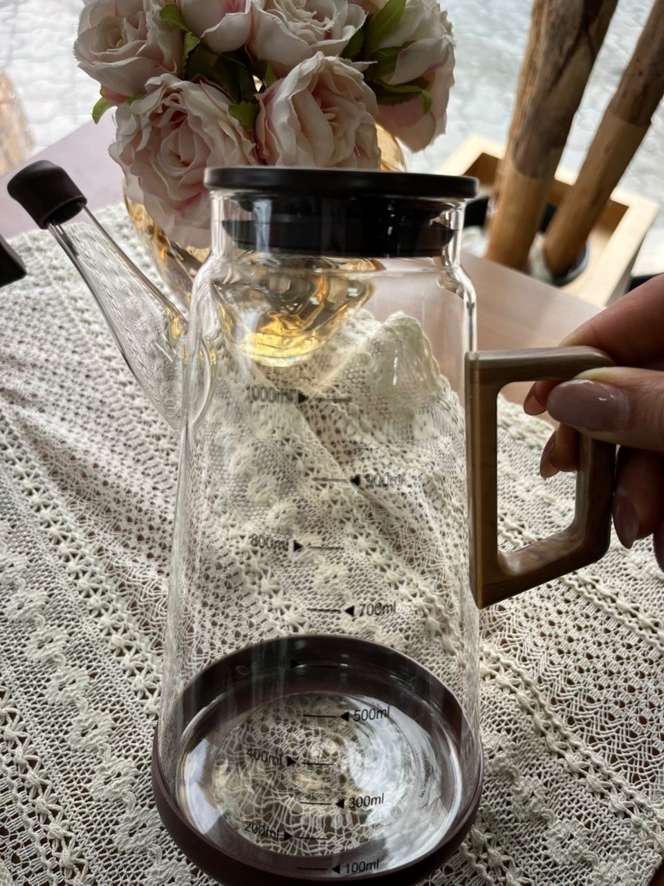 این محصول از شیشهی شفاف مقاوم به حرارت ساخته شده و دارای خطکش مدرج حجمی از 100 تا 1000 میلیلیتر روی بدنه است.