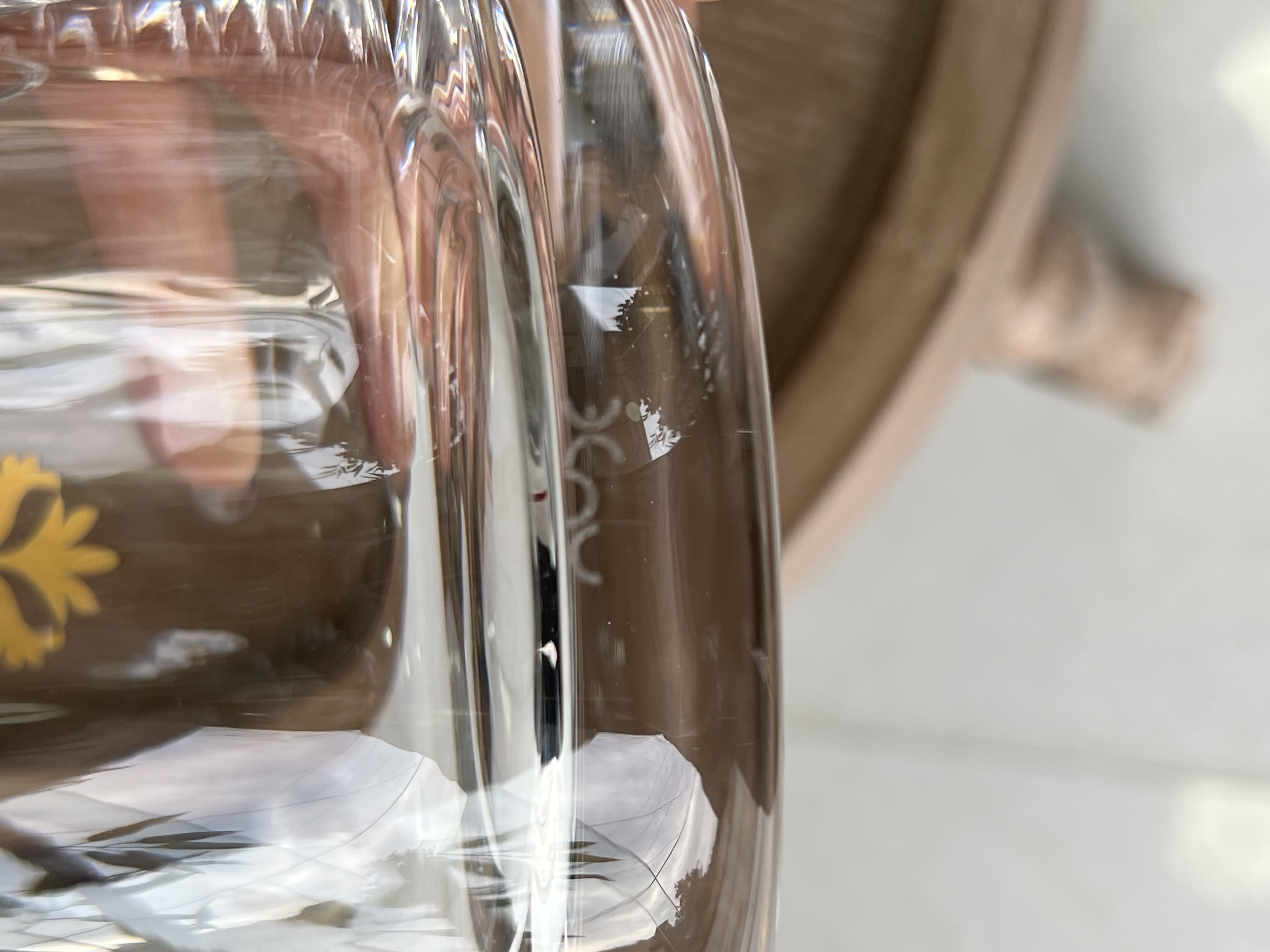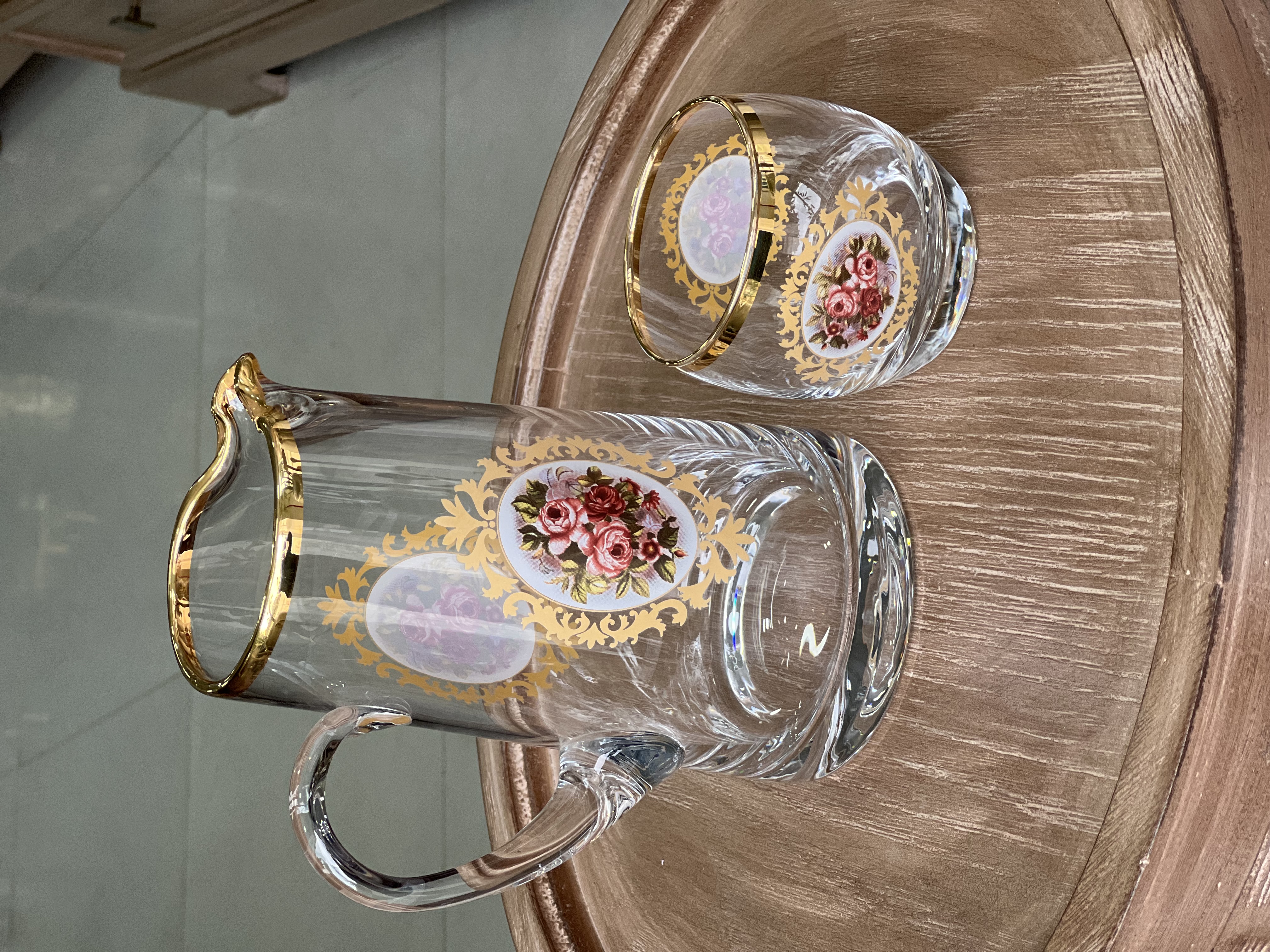 لب طلا شامل 1 پارچ و 6 لیوان از جنس بلور شفاف است