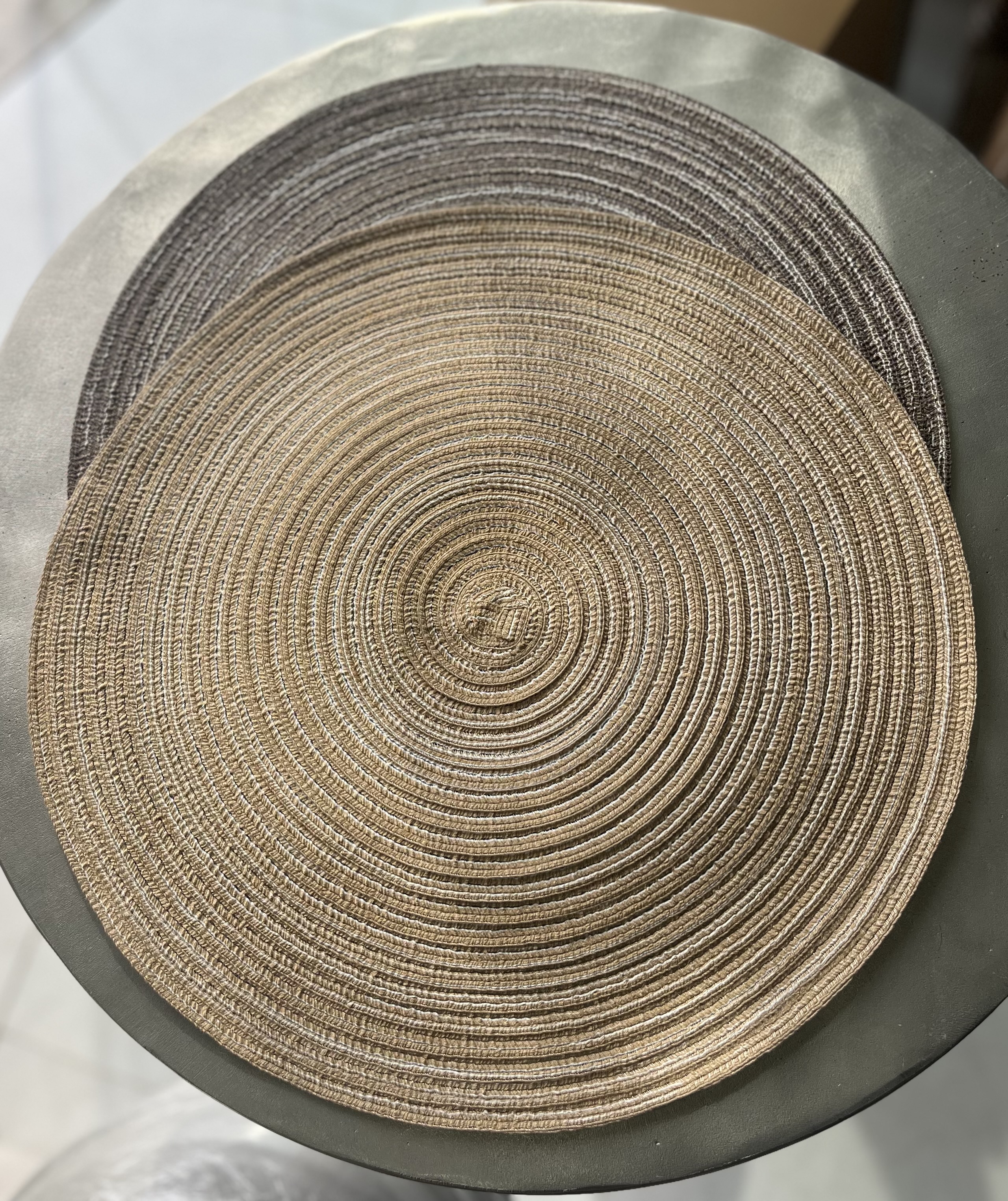 دستهبندی: شال مبل (اکسسوری مبل،رومیزی،رانر،پادری و ...)۱:: زیر بشقابی قطر ۴۰ سانت۲:: در دو رنگ قهوه ایی و کرم۳:: مناسب میز ناهار خوری۴:: جنس بافت خیلی نازک از حصیر