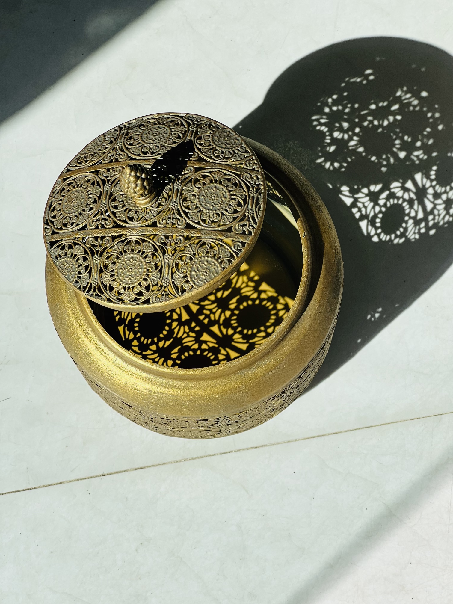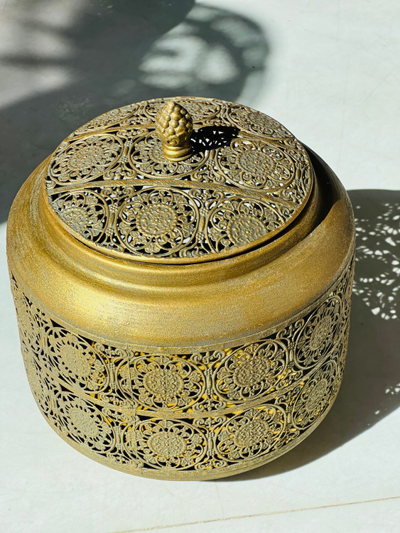 بانکه فلزی مراکشی مشبک با طراحی اصیل و الهامگرفته از هنر سنتی مراکش، انتخابی خاص برای افرادی است که به دکوراسیون لوکس و جزئیات هنری اهمیت میدهند. این بانکهها در سه سایز کاربردی طراحی شدهاند و با رنگ طلایی پتینهای جلوهای گرم، آنتیک و چشمنواز به آشپزخانه و فضای دکوراسیون منزل میبخشند.