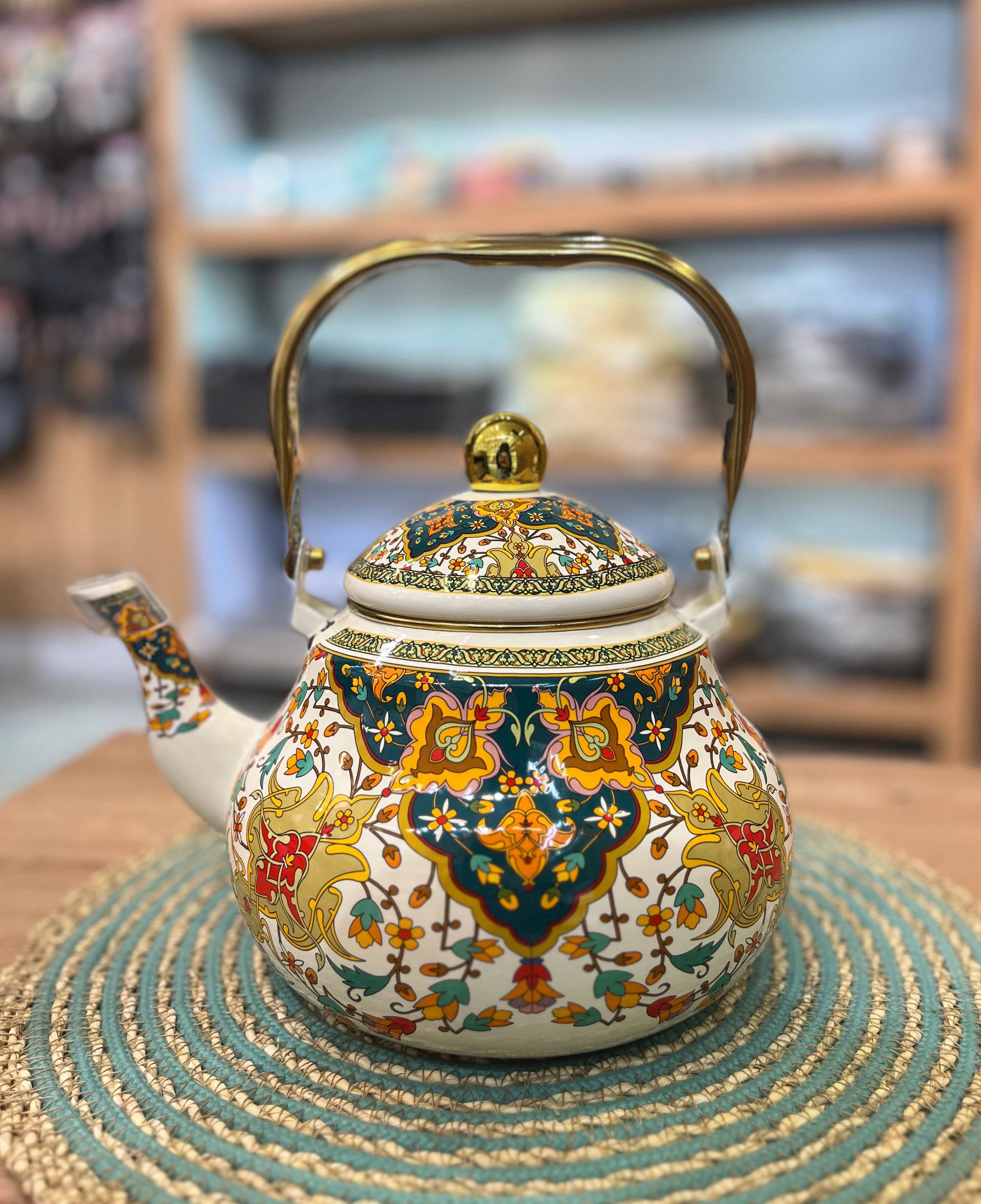 کتری لعابی طرحدار مراکشی- مدل سنتی گلدار