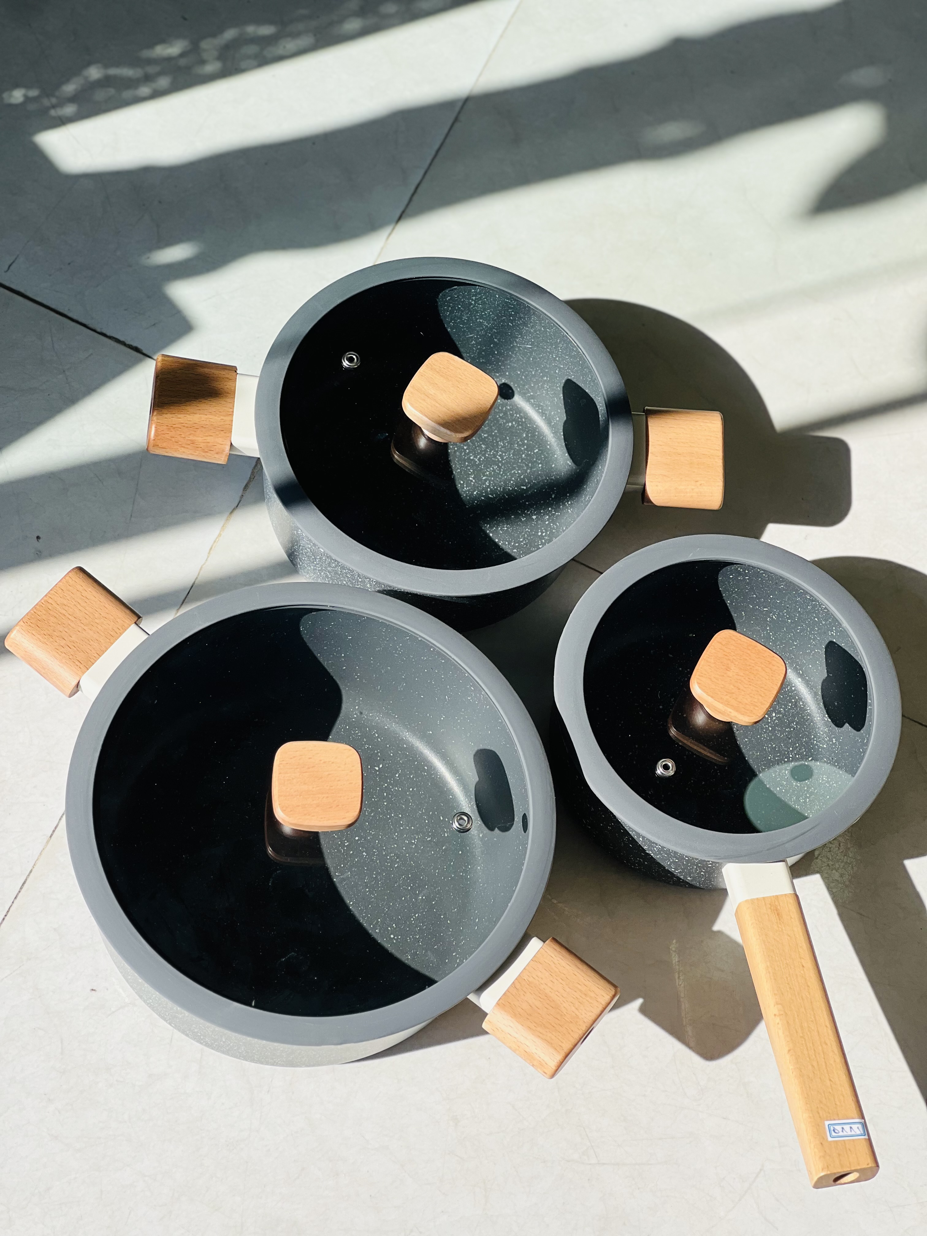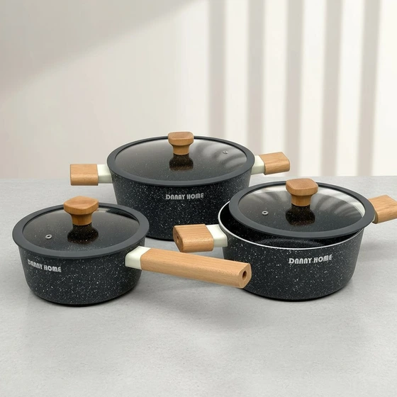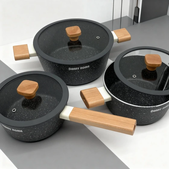 قابلمه دنی هوم دسته چوبی مشکی گرانیتی (۱۸، ۲۰ و ۲۴ سانتی‌متر)
