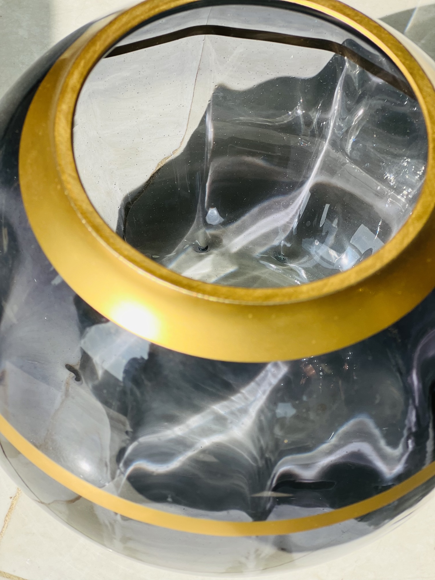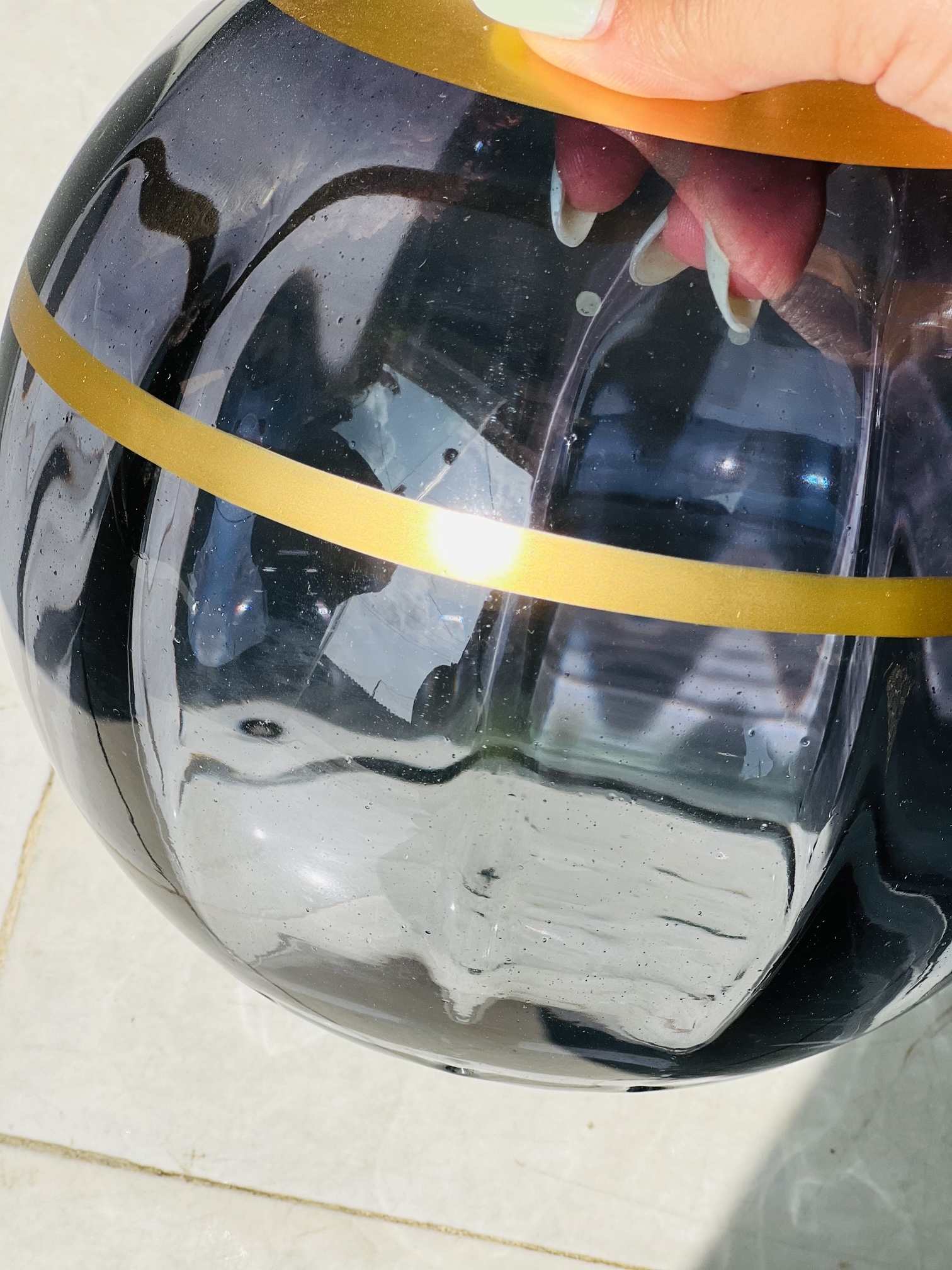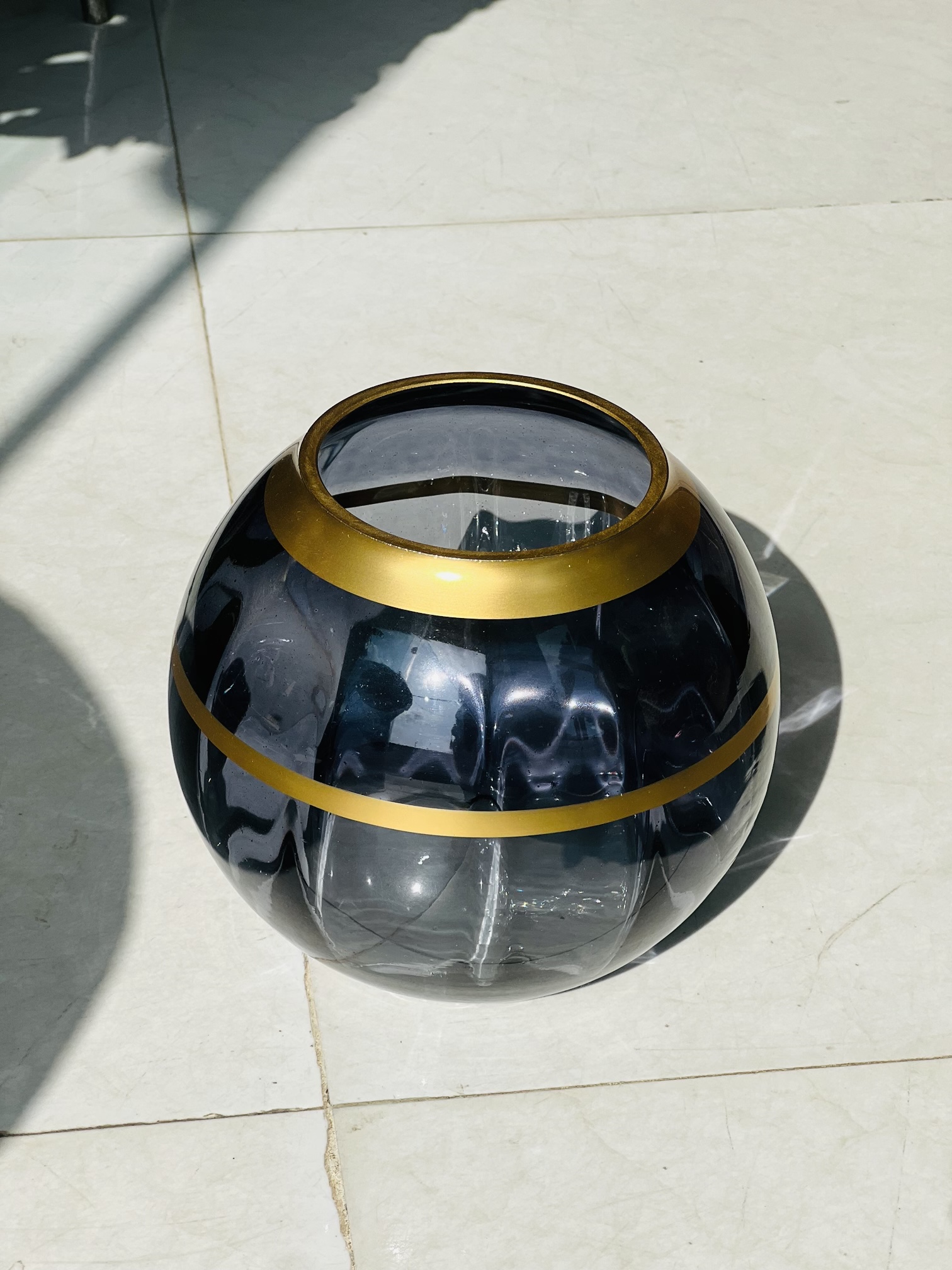 گلدان شیشه دست ساز رومیزی مدل ولنسیا بزرگ - سورمه ای