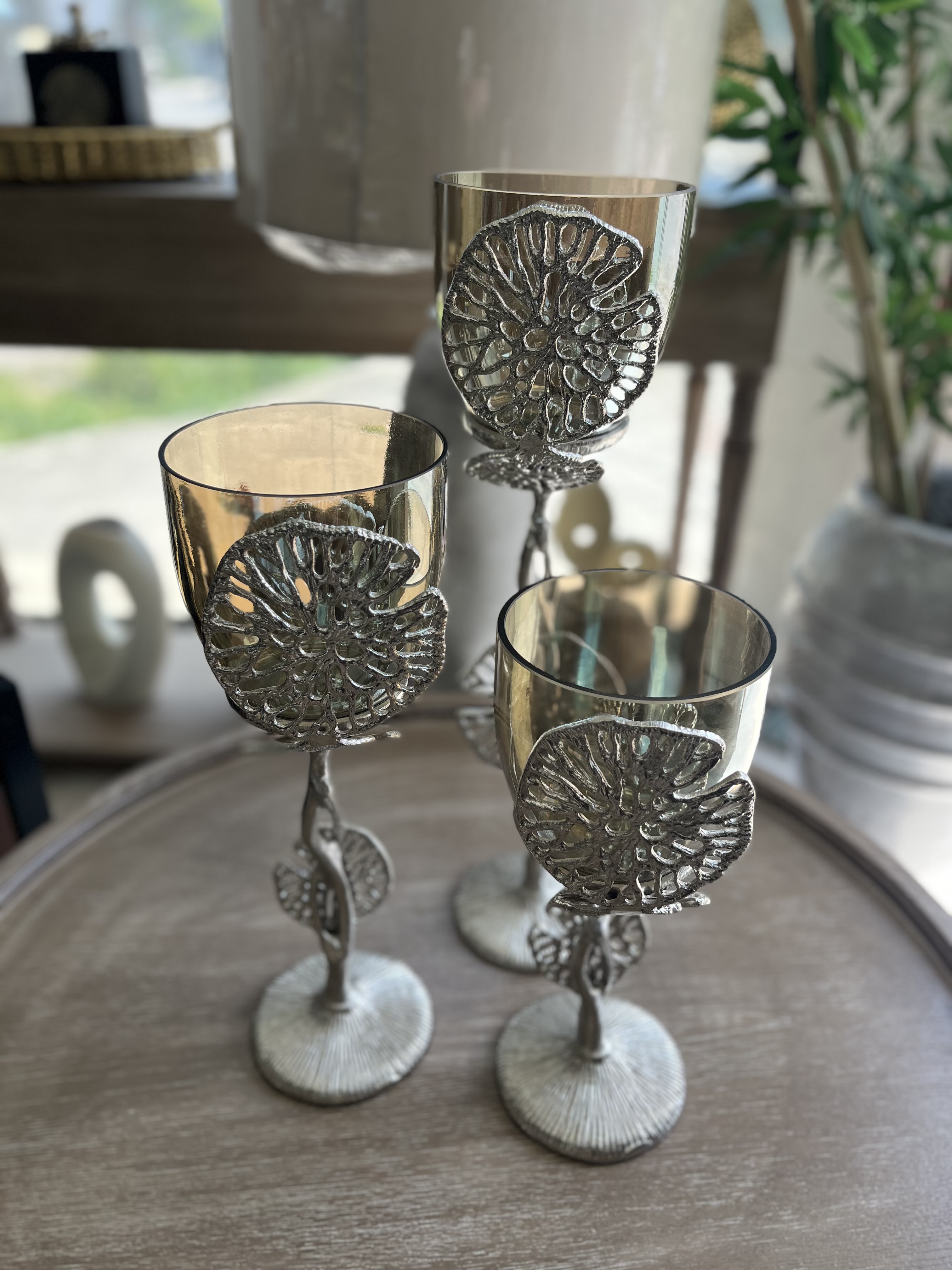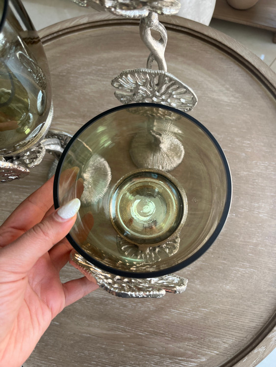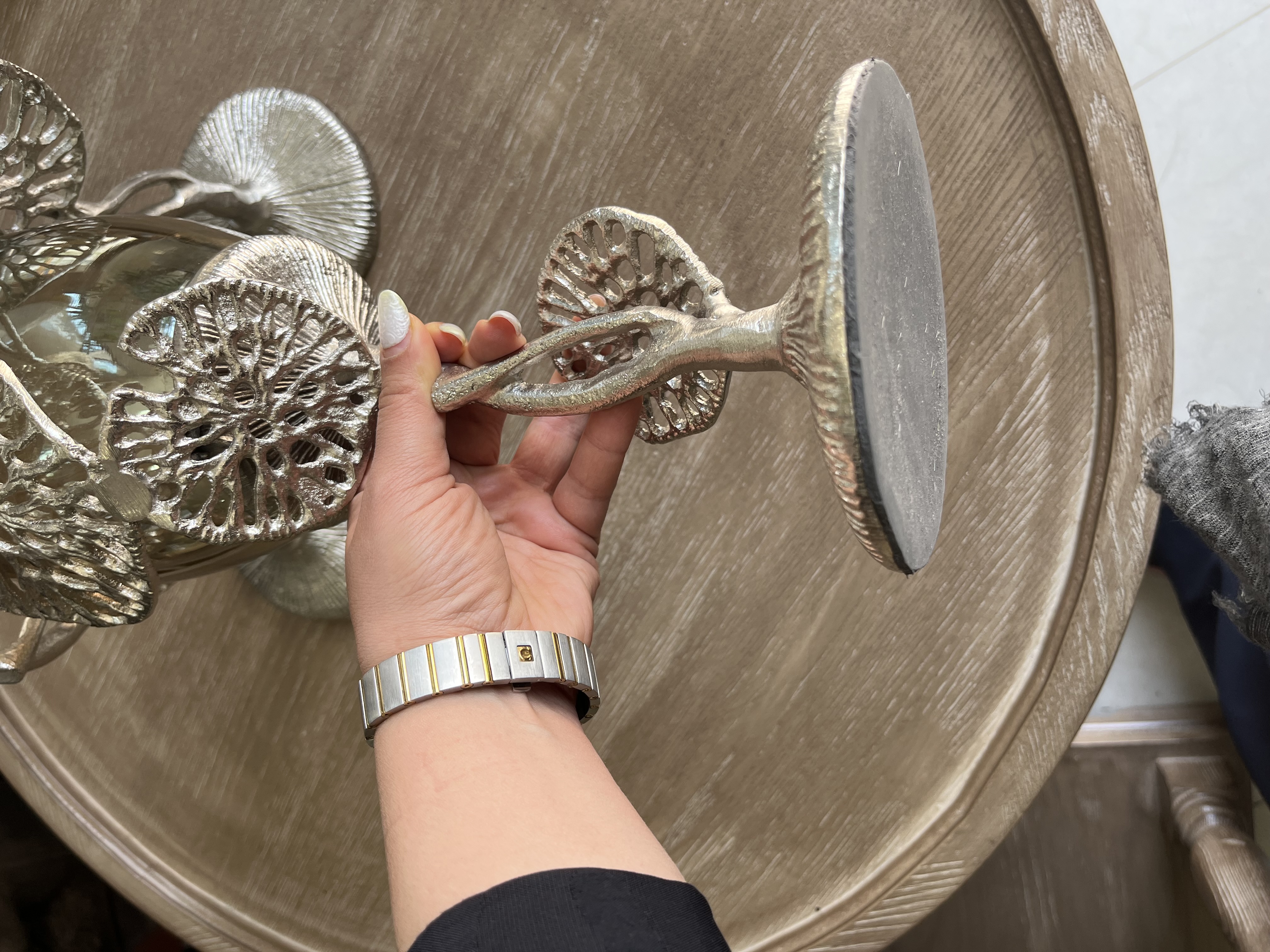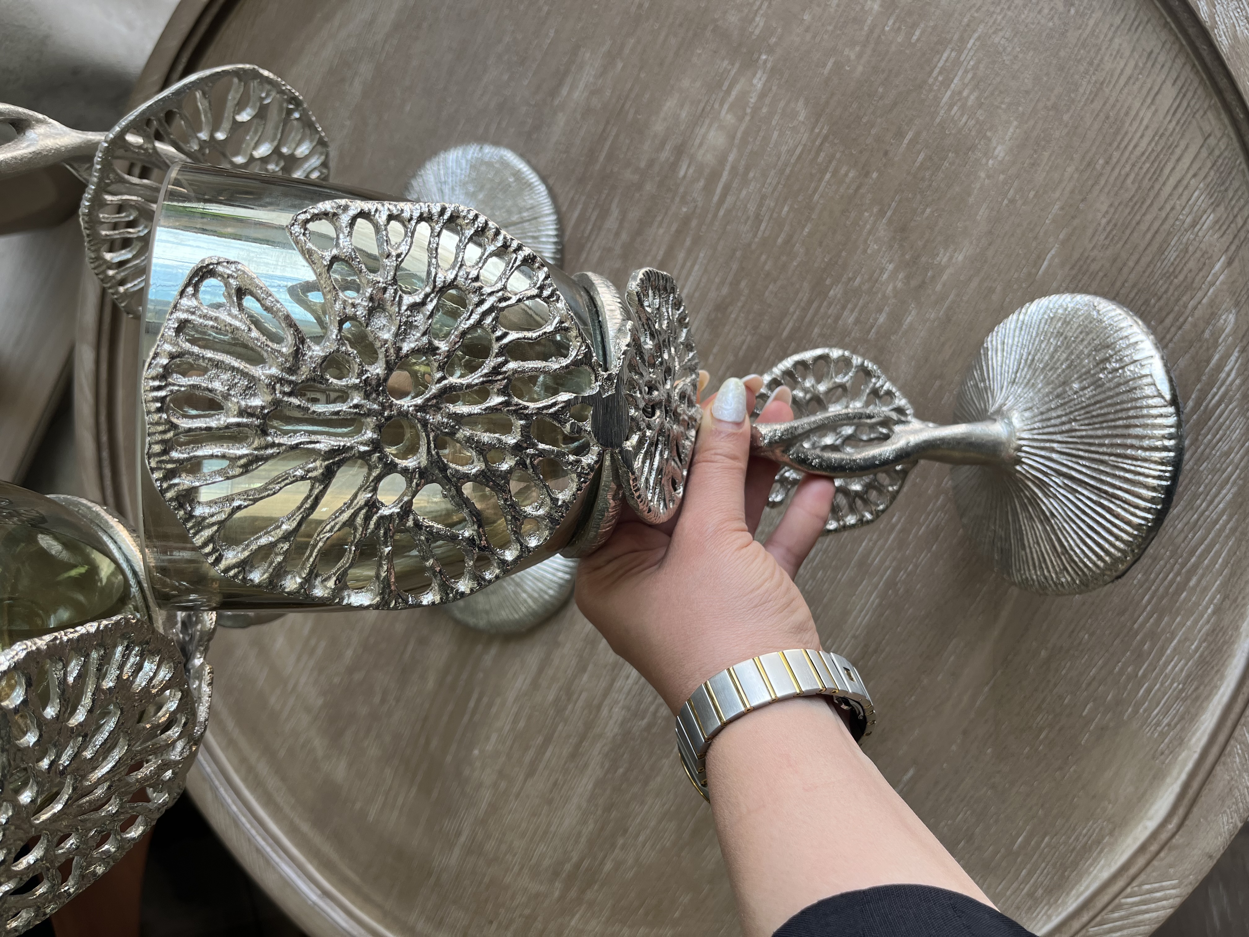 این ست شمعدان از آن دسته محصولاتی است که بلافاصله توجه بیننده را جلب میکند. طراحی منحصربهفرد برگهای فلزی روی بدنه، علاوه بر زیبایی، حس هنری و طبیعی به فضا میبخشد. ترکیب رنگ طلایی ملایم لیوانها با پایه فلزی نقرهای باعث شده محصول بهراحتی با دکورهای مختلف ست شود.