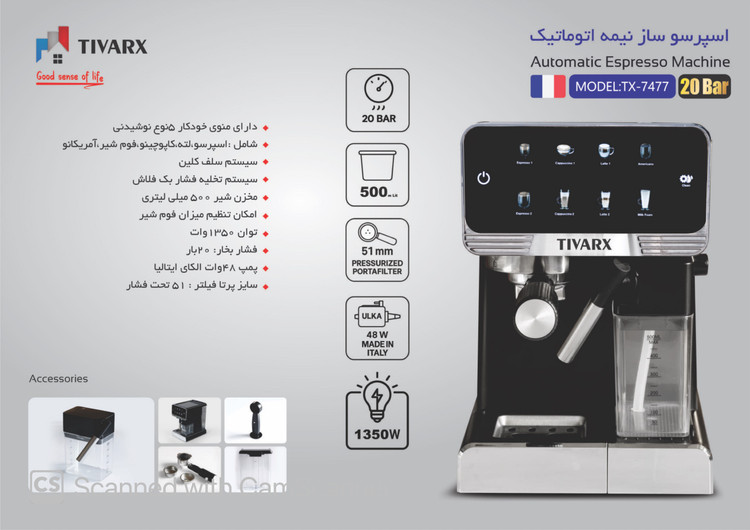 اگر قصد خرید یک اسپرسوساز خانگی با قیمت مناسب و عملکرد حرفهای را دارید، اسپرسوساز تیوارکس مدل TX‑7477 یکی از گزینههای ارزشمند بازار محسوب میشود.