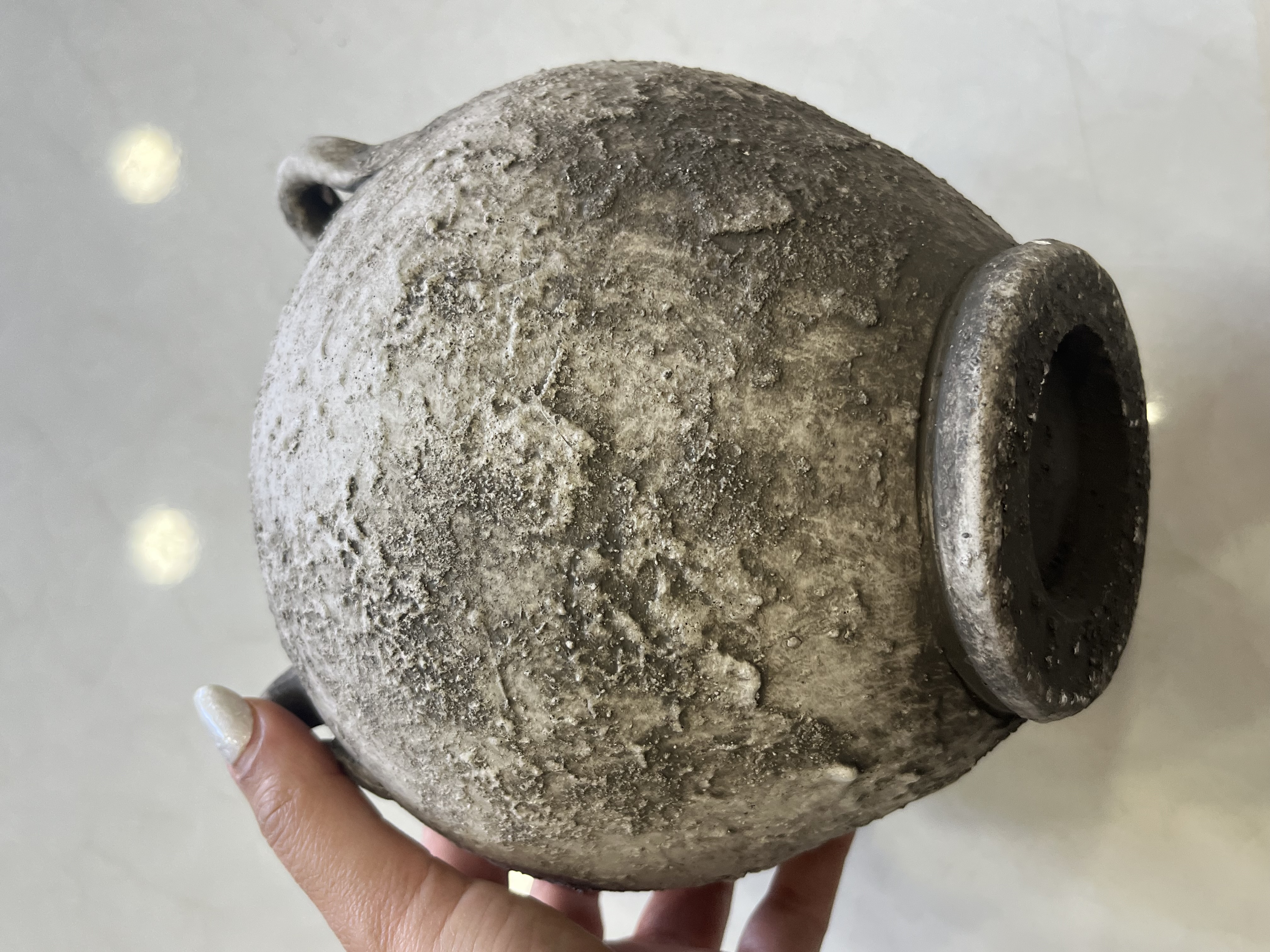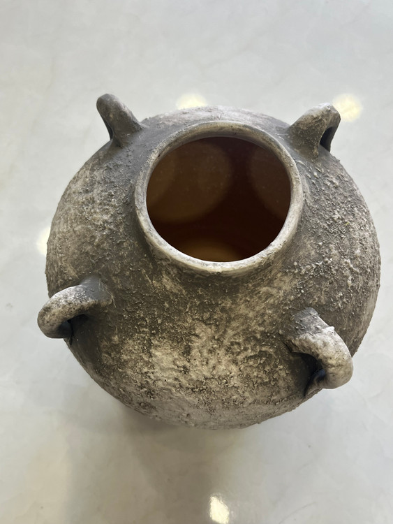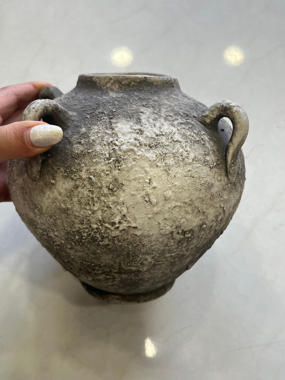 وجود دستههای کوچک در دو طرف گلدان نیز به جذابیت آن اضافه کرده و حس یک شیء هنری باستانی را ایجاد میکند.