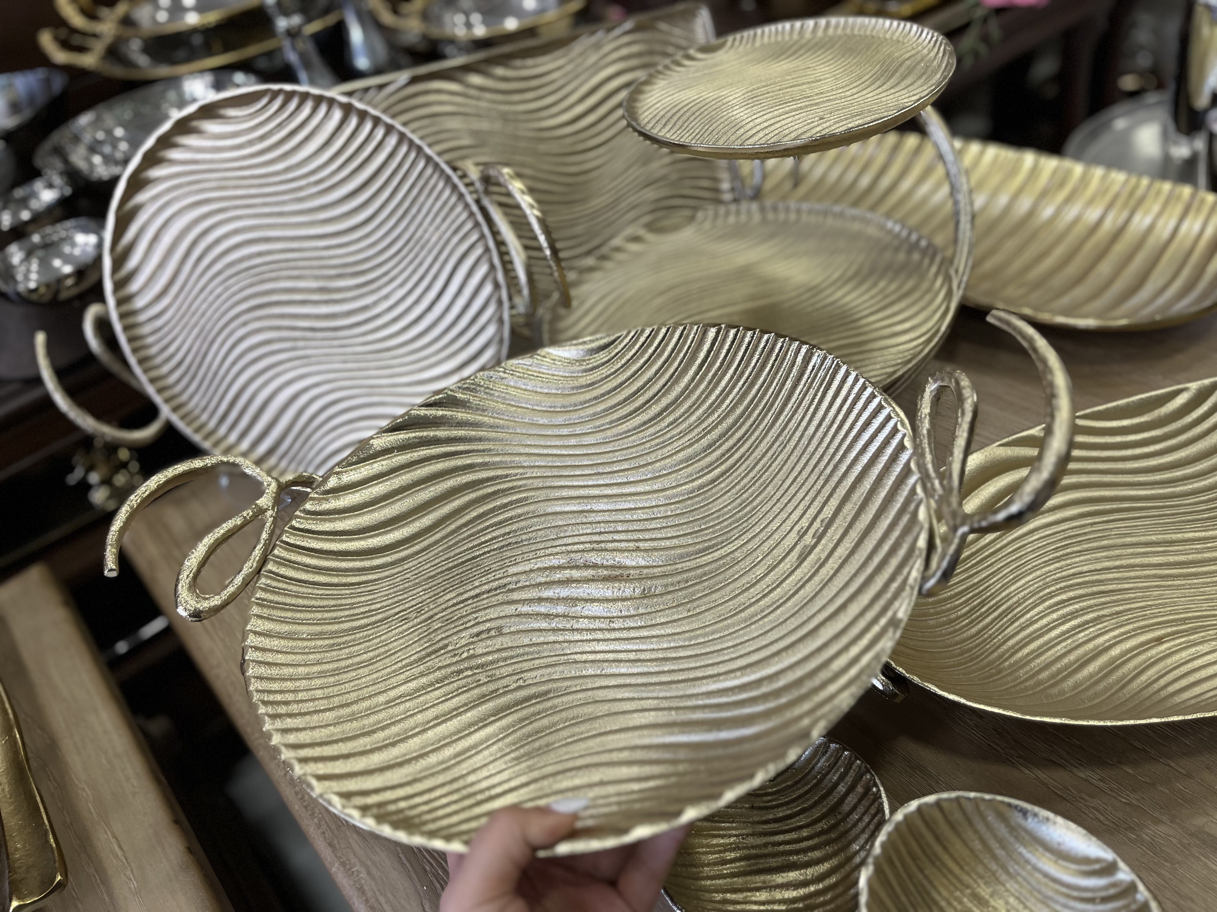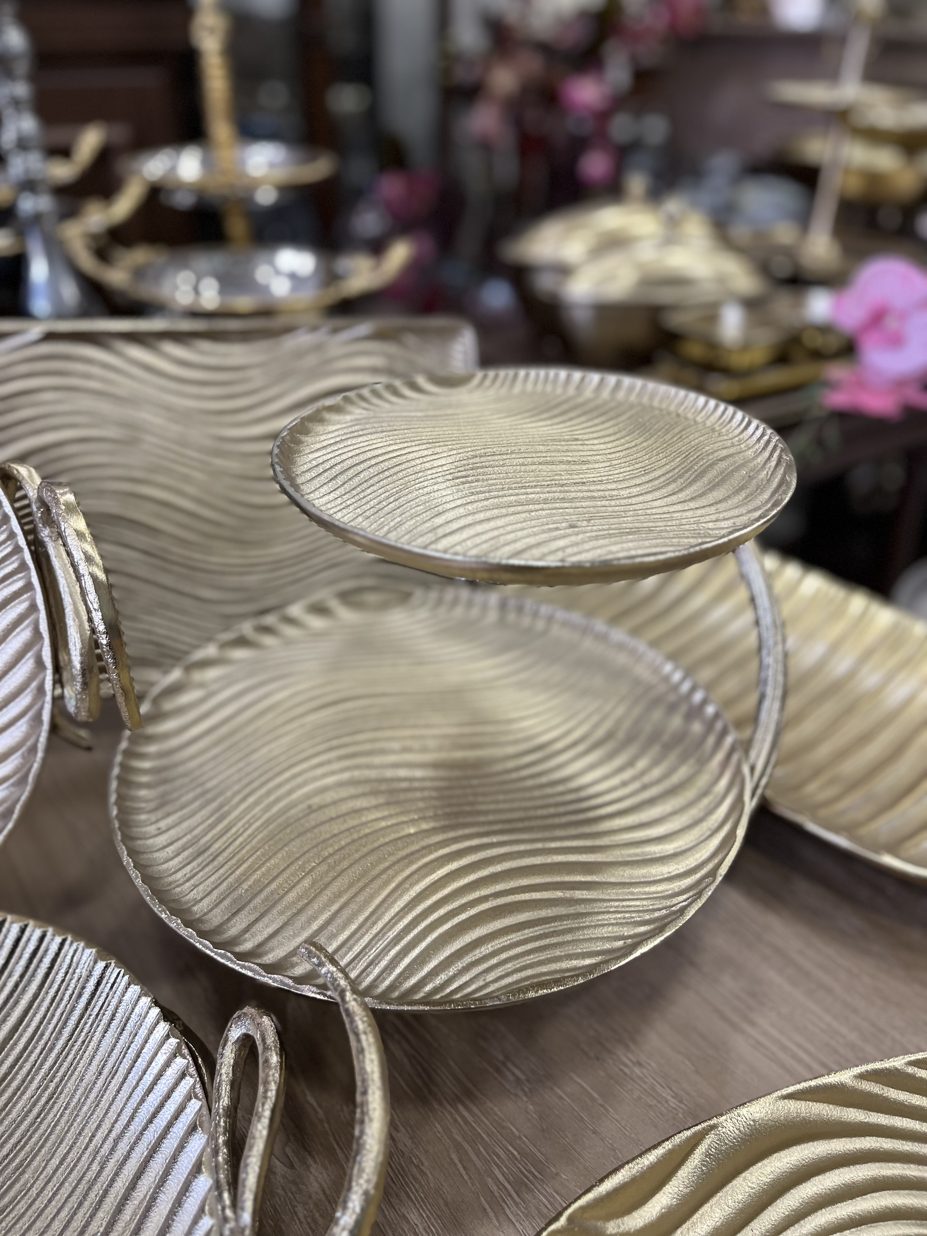 سرویس پذیرایی ۵ تیکه الومینیوم طرح موج رنگ طلایی مات