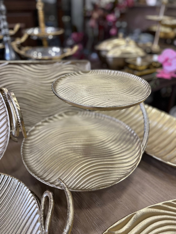 سرویس پذیرایی آلومینیوم طرح موج طلایی مات یکی از سرویسهای شیک و کاربردی برای پذیرایی در مهمانیها، دورهمیها و مجالس است. این سرویس با طراحی خاص و خطوط موجی شکل خود جلوهای بسیار متفاوت نسبت به ظروف پذیرایی معمولی دارد.