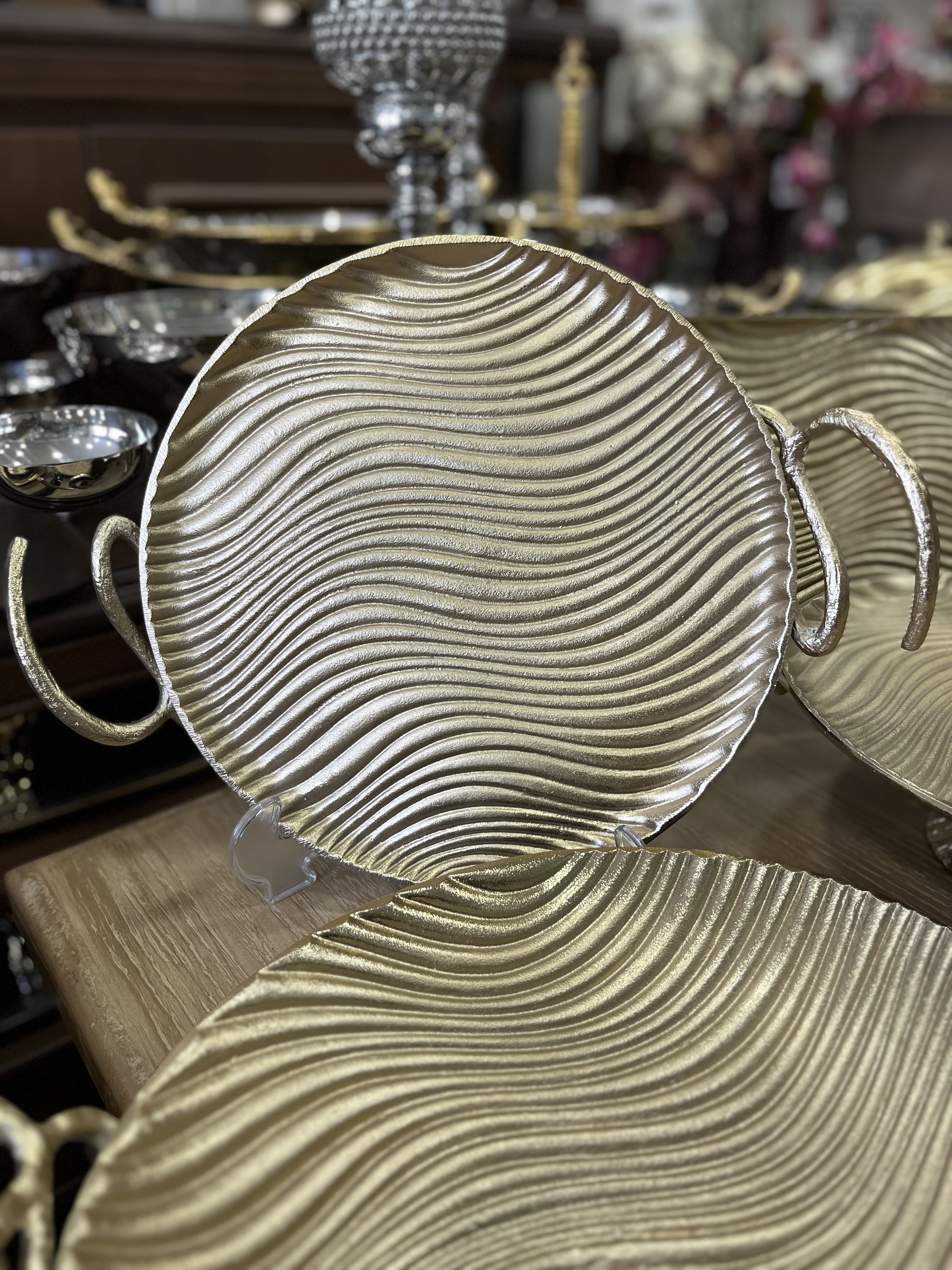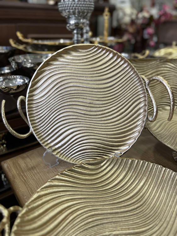 وزن مناسب، لبه مقاوم و طراحی موجی باعث میشود این سینی در مهمانیها جلوهای خاص داشته باشد.