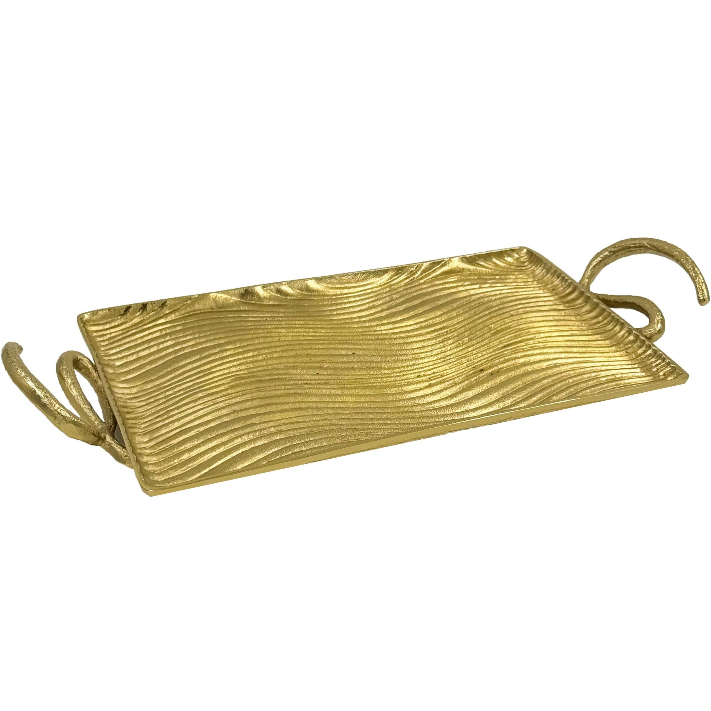 سینی موج مستطیل رنگ کرم و طلایی مات