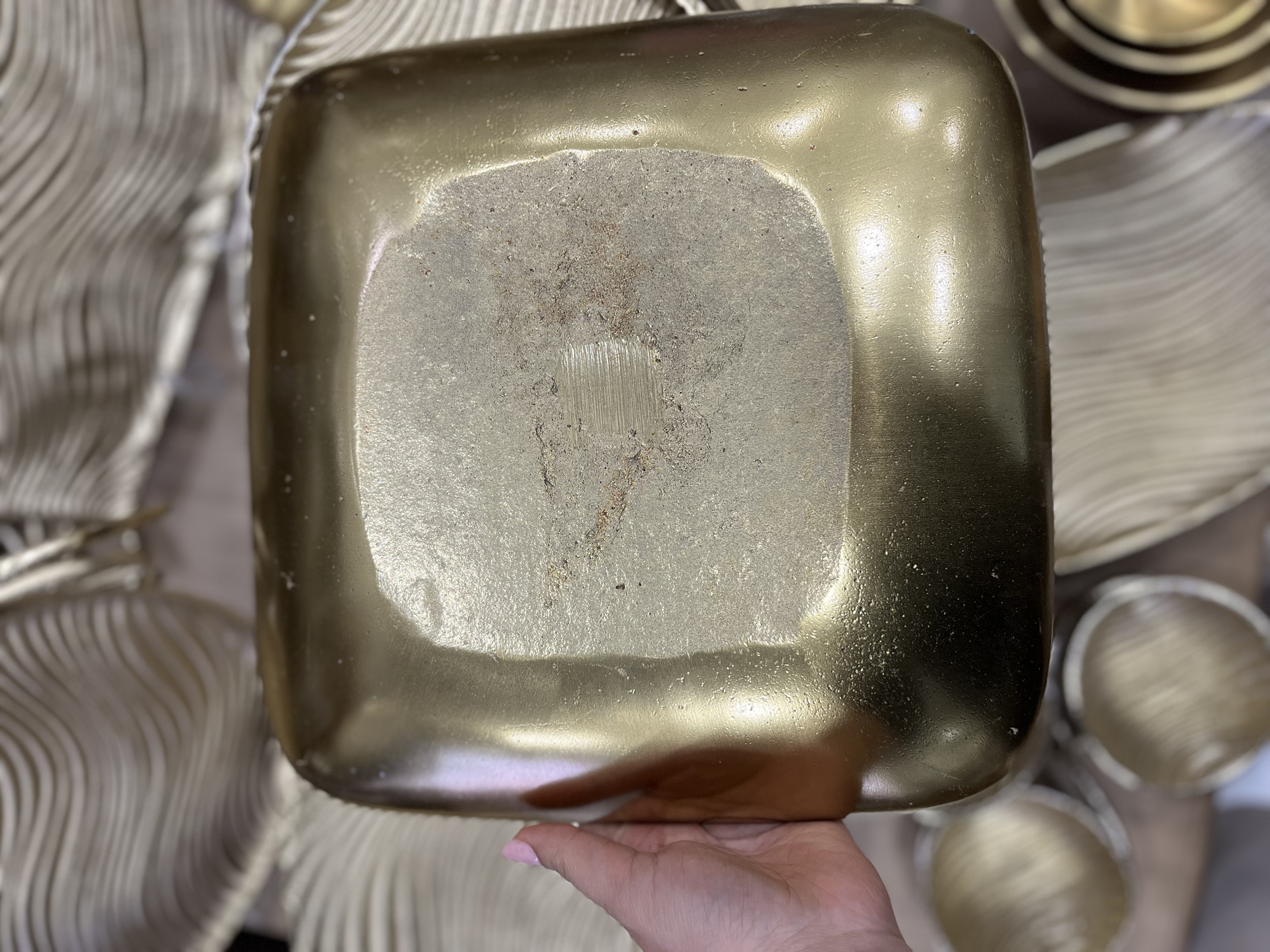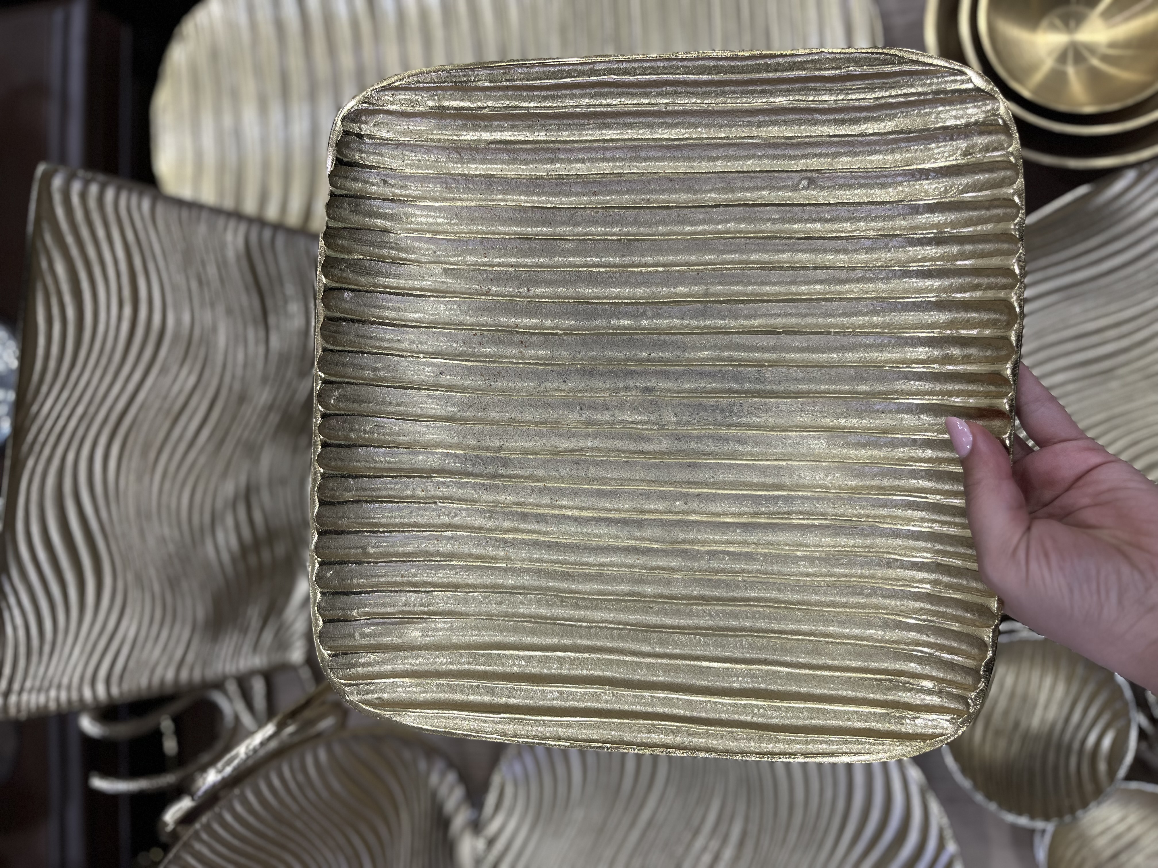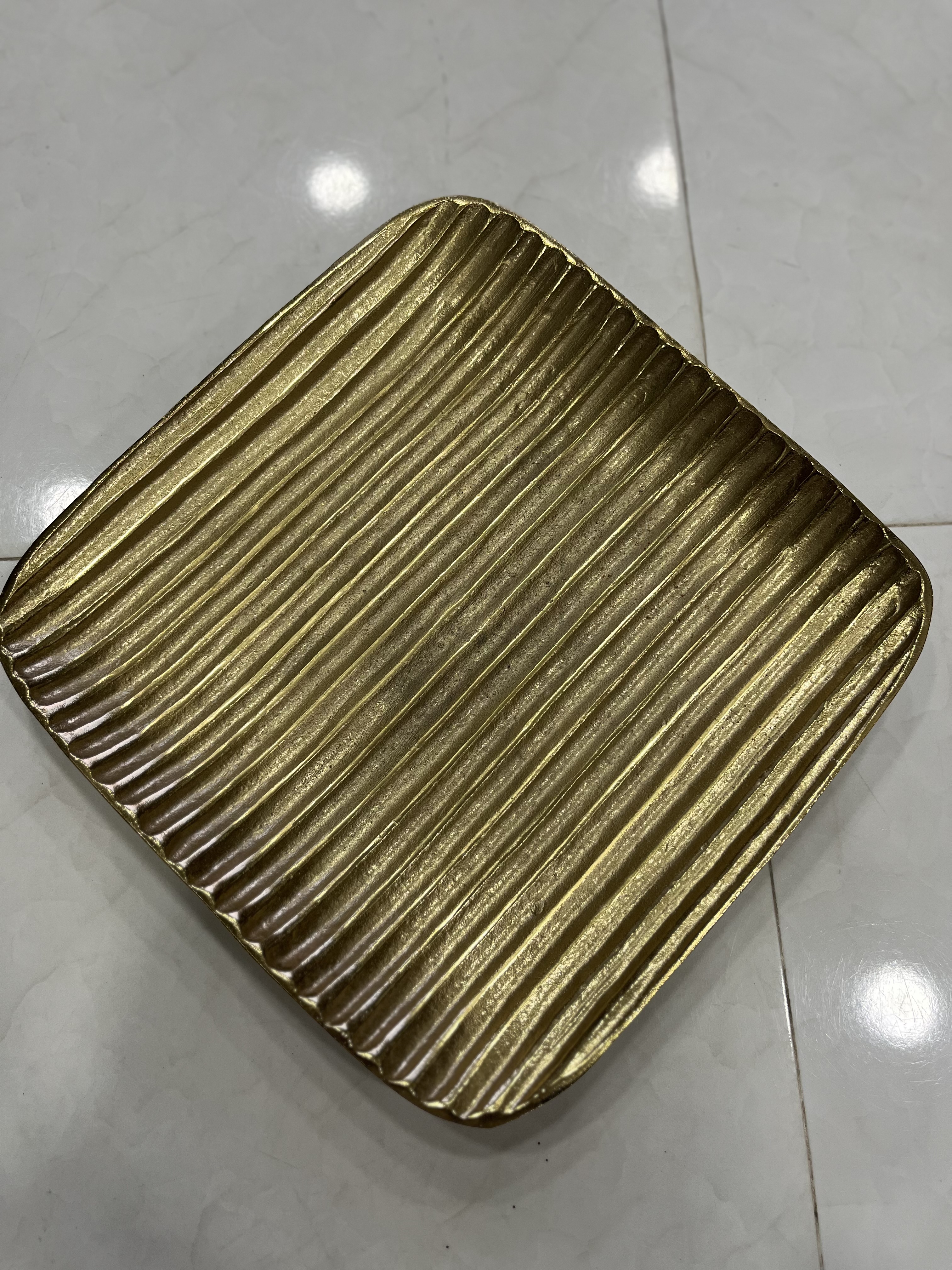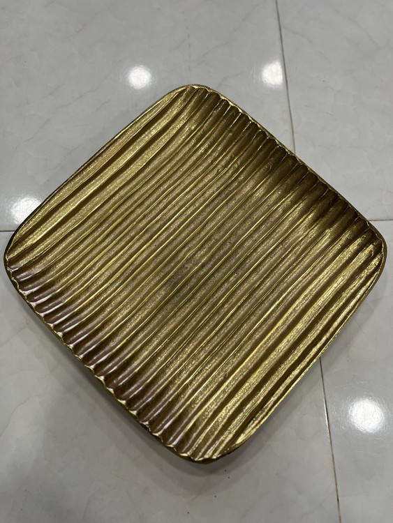 میوه خوری آلومینیومی دست ساز طلایی طرح موج (سایز ۳۰ در ۳۰)