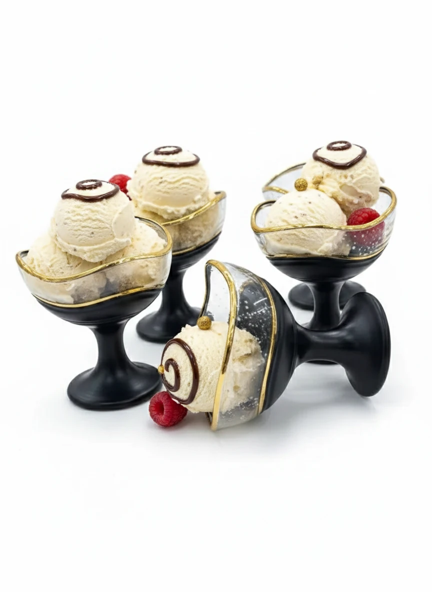این جنس کریستالی باعث میشود نور به زیبایی از سطح ظرف عبور کند و بستنی یا دسر درون آن جلوهای بسیار خوشرنگتر و جذابتر پیدا کند.