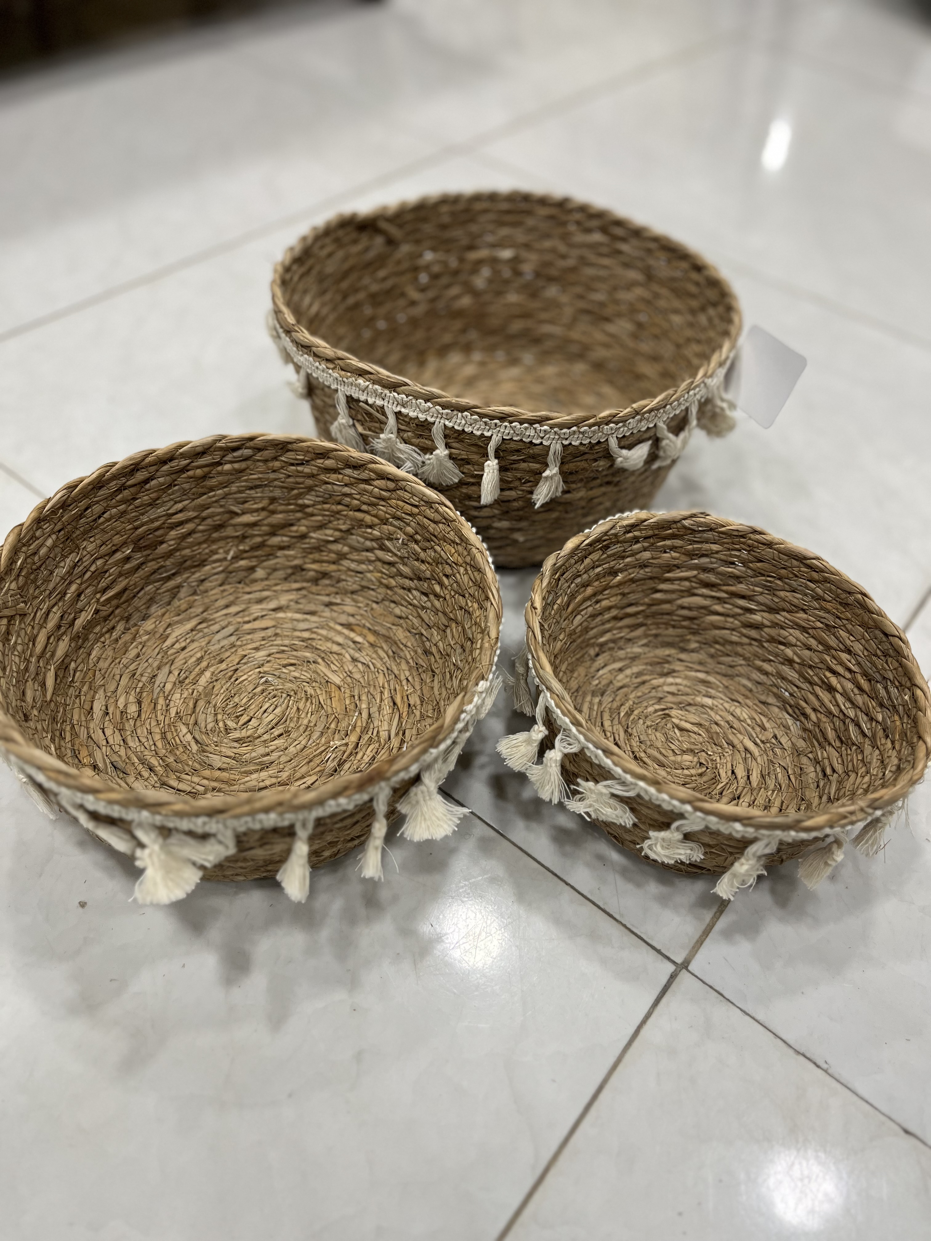 سبد حصیری گرد سه عددی (قطر ۳۰ و ۲۵ و ۲۰ سانت)