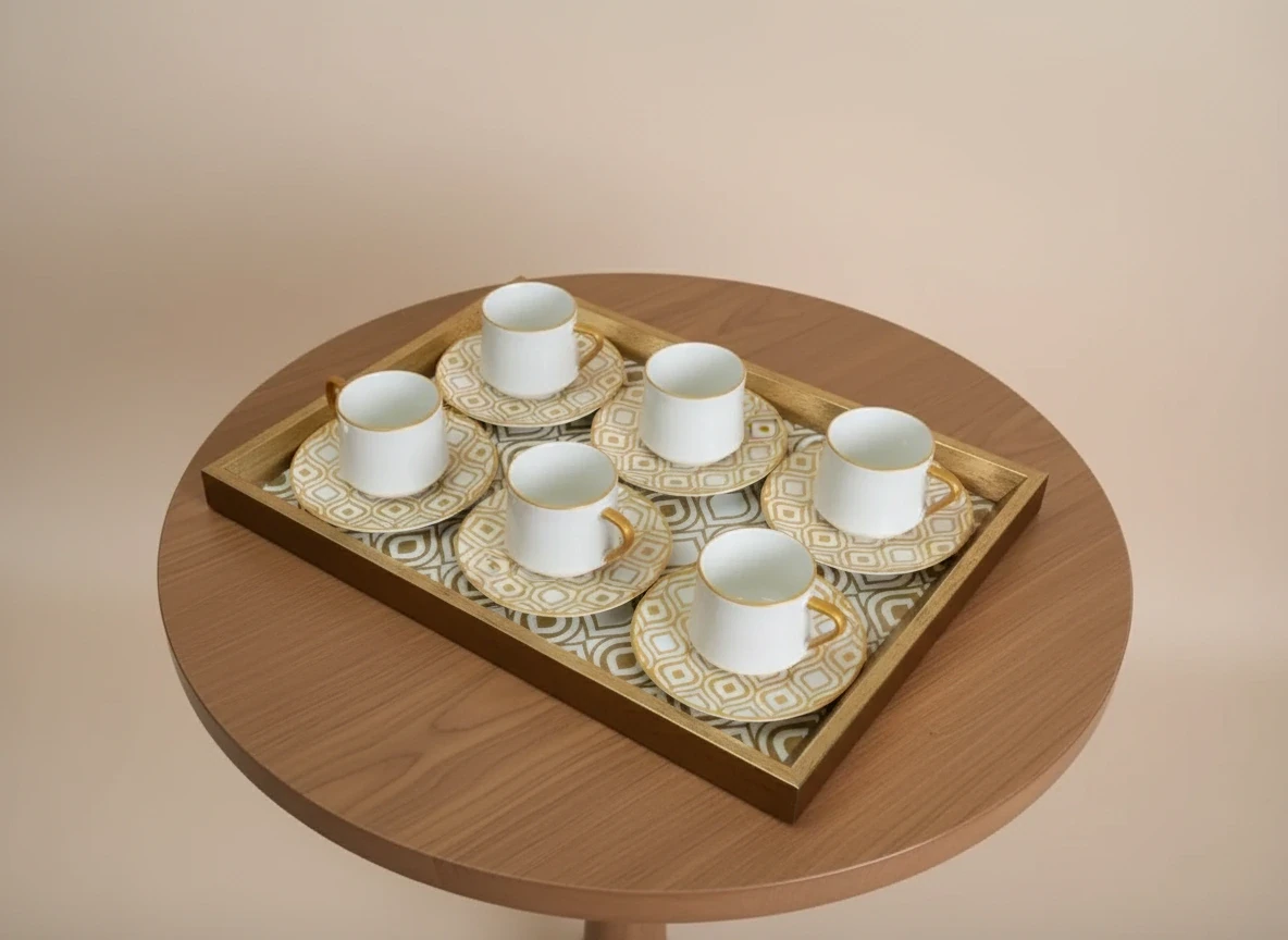 ست چایی خوری ۱۲ پارچه ترک برند راشل همراه با سینی چای خوری ست