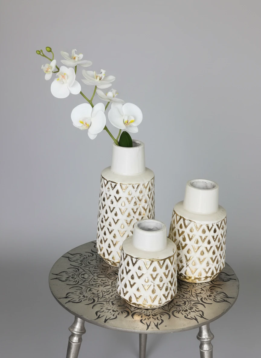 ست گلدان رو میزی مدرن طرح دفرمه رنگ توسی