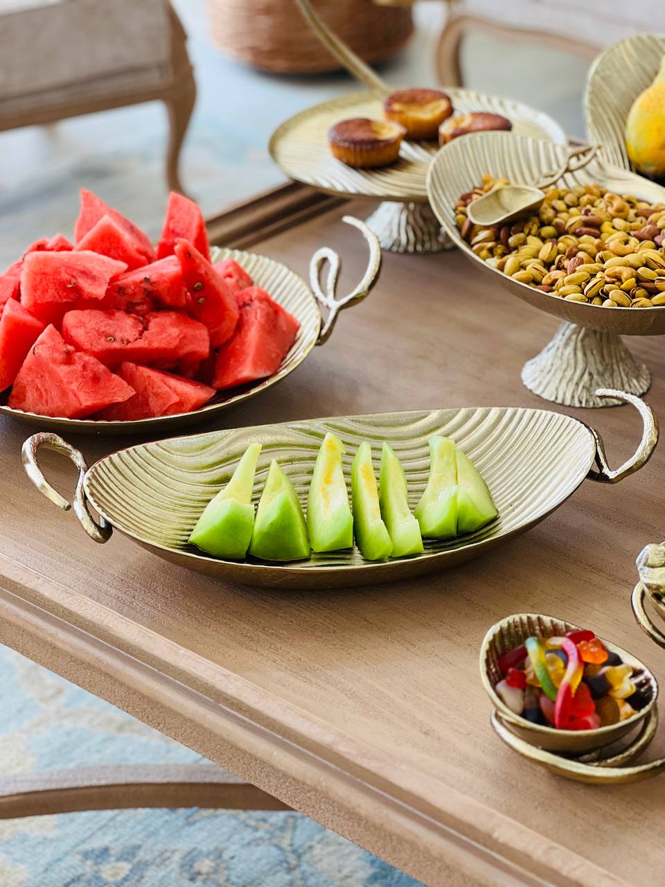 سرویس پذیرایی ۵ تیکه الومینیوم طرح موج رنگ طلایی مات