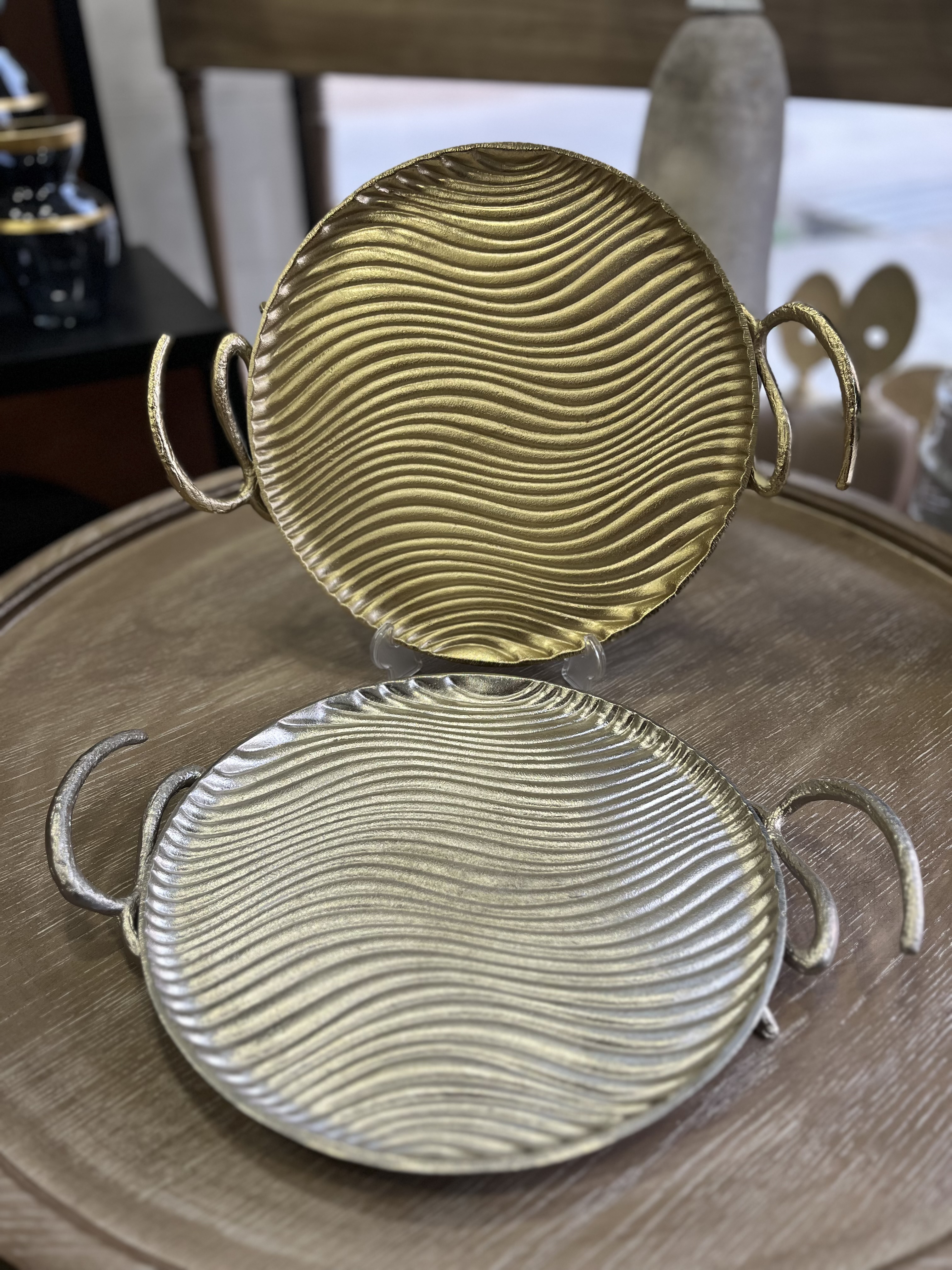سينى پذیرایی گرد موج دار 30 سانتى آلومينيوم مدل اوشن( رنگ کروم و طلایی)