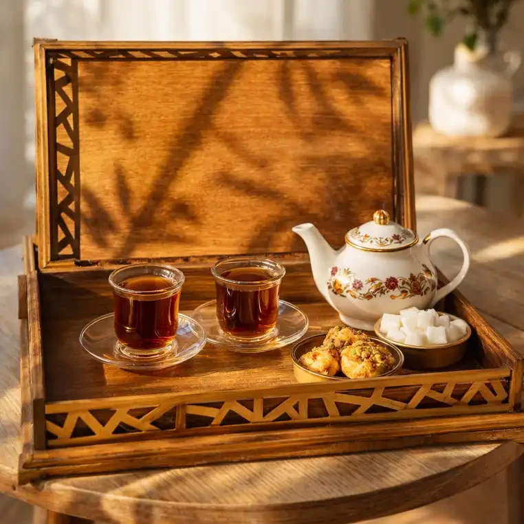 سینی پذیرایی چوبی و اکرولیک طرح شاین( وارداتی )