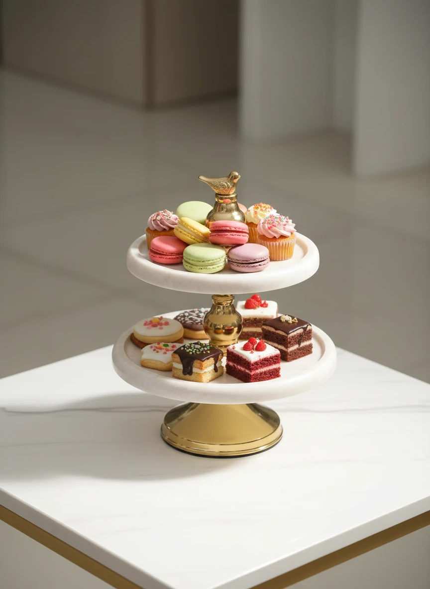 شیرینی خوری ٢طبقه ایکیا جوب مصنوعی و فلز آبکاری فورتیک رنک سفید طرح سنکً